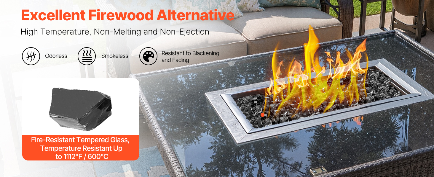 Toto ohnivé sklo je vyrobené z kremenného piesku a zvládne teploty až do 1112℉/ 600 ℃. Nepraská, netmavne, nevytvára dym ani zvláštne pachy, čo vám dáva pokoj pri každom použití.