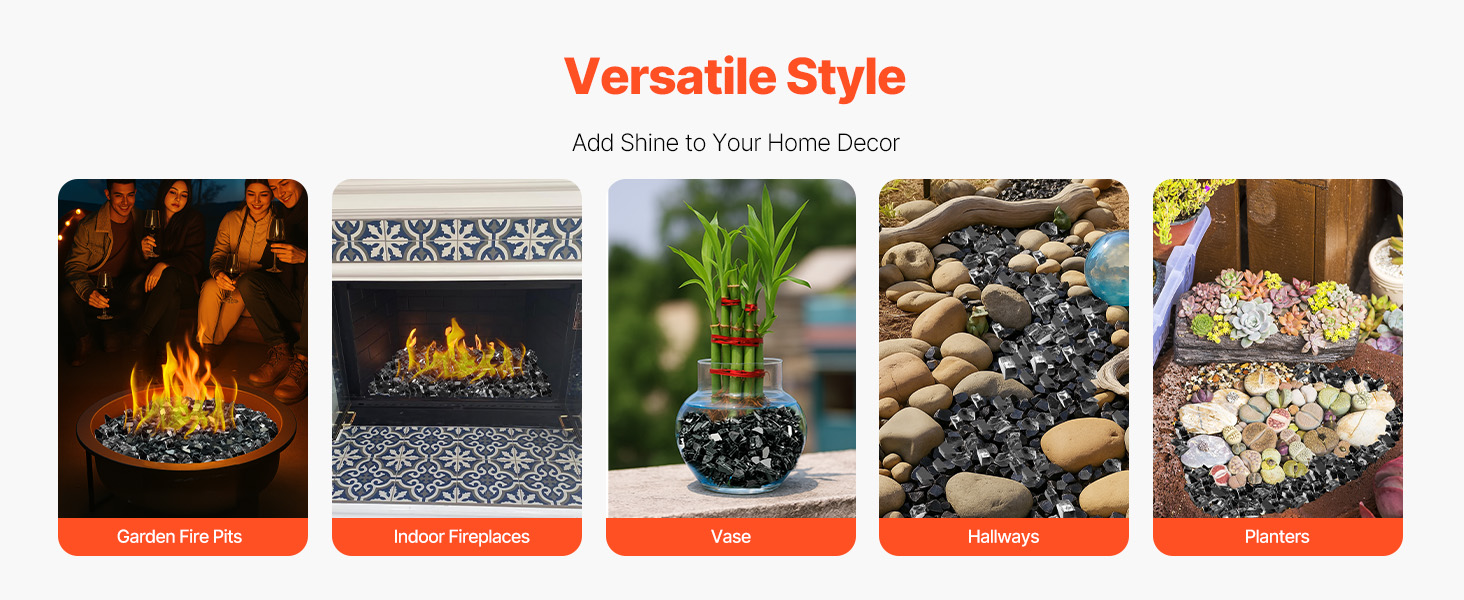 Naše žiarivé, farebné dekoratívne kúsky vyrobené z prvotriedneho ohňového skla sú odolné a zvládajú teplo. Nerozpúšťajú sa, nepraskajú, nevytvárajú dym ani popol. Stačí ich rýchlo utrieť a opäť získajú lesk. Sú ideálne pre ohniská, krby a záhrady a bez námahy dodajú vášmu domovu iskru.