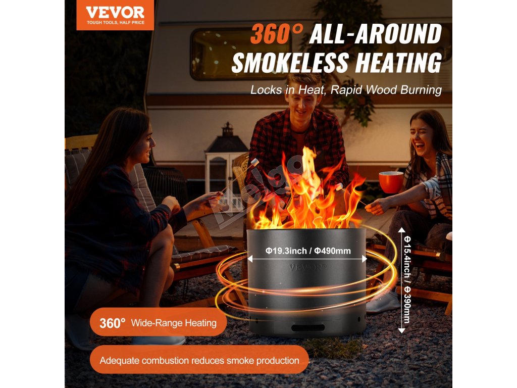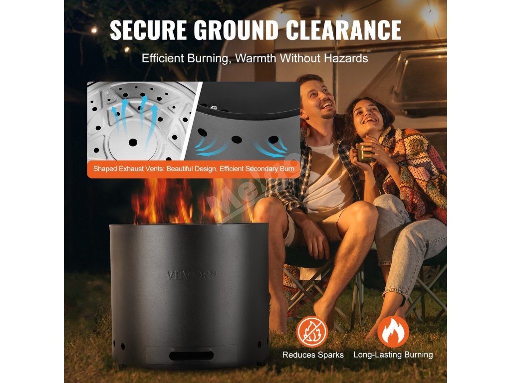 Naše vylepšené ohnisko na drevo sa vyznačuje bezdymovým a beziskrovým spaľovaním, čo zaručuje bezpečný pobyt vonku bez obáv z dymu alebo iskier. Vychutnajte si čisté a bezpečné vykurovanie pri stretnutiach na dvore, kempovaní, táborákoch a grilovaní.