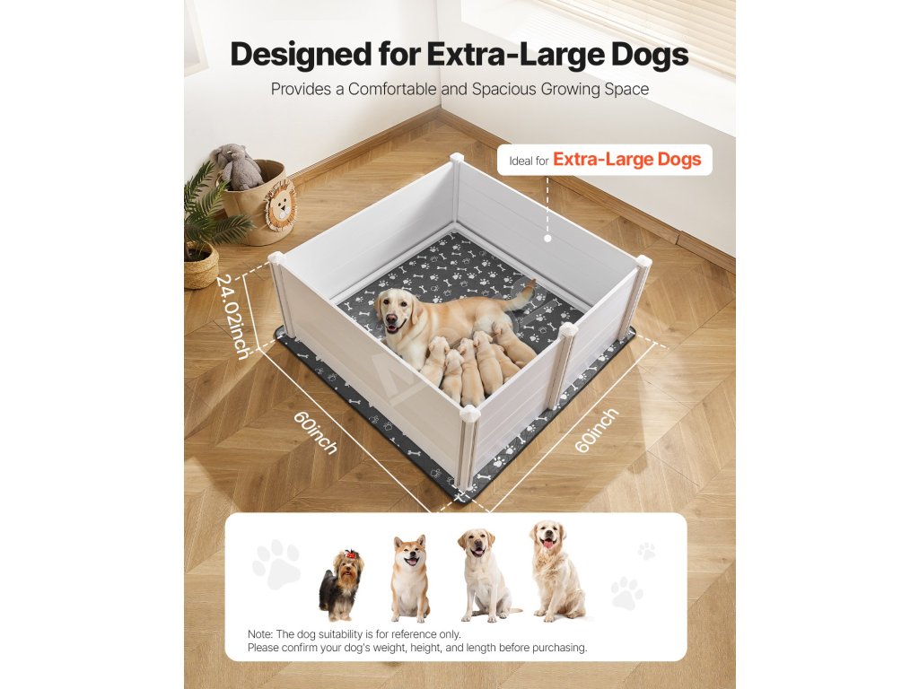 Box pre odchov šteniat 60×60×24 inch pvc, nastaviteľné dvere