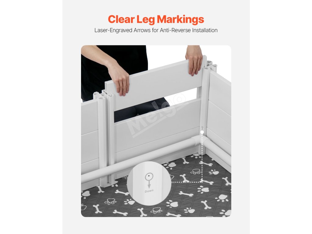 Vďaka konštrukcii so sponou a predvŕtaným otvorom sa koterec pre šteňatá ľahko zostavuje. Laserom vyryté šípky usmerňujú správnu montáž, čím zabezpečujú jednoduché a bezchybné nastavenie v priebehu niekoľkých minút a vytvárajú bezpečný priestor pre vášho psa.