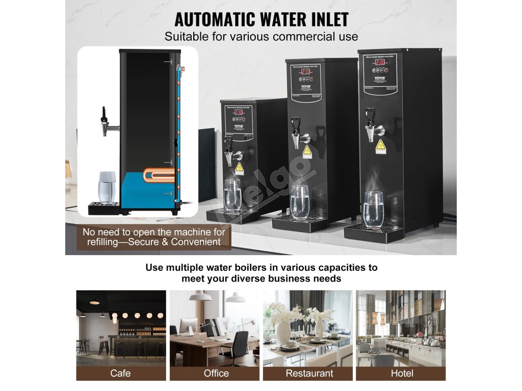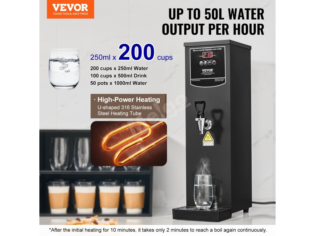 S výkonom až 50 litrov za hodinu dokáže tento komerčný bojler nepretržite servírovať 200 šálok po 250 ml, vďaka čomu vaši hostia nikdy nebudú musieť čakať na teplú vodu, a to ani počas špičky.