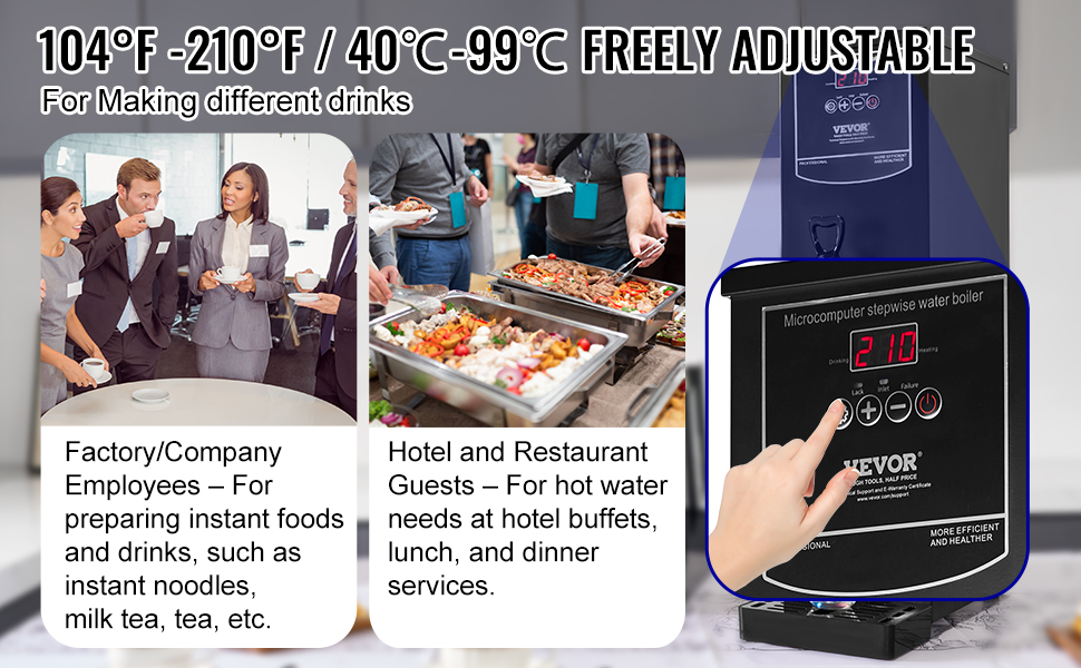 Teplotu ľahko nastavíte v rozmedzí 104℉-201℉ / 40 ℃-99 ℃, aby vyhovovala potrebám rôznych ingrediencií a nápojov. Displej teploty v reálnom čase vám umožní sledovať výkon zariadenia na prvý pohľad, čím sa zabezpečí presný a konzistentný ohrev.