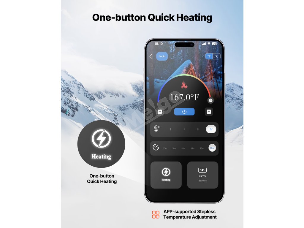Vyhrievané ponožky s batériou 6000mAh, 4 stupne, app ovládanie