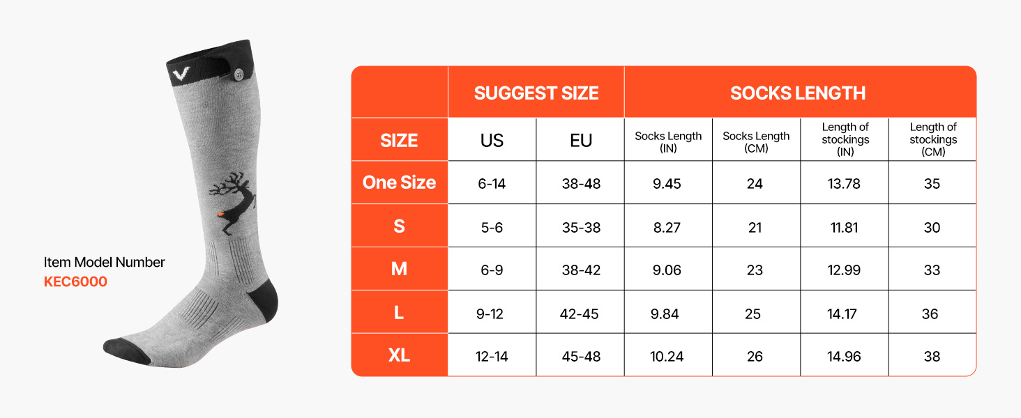 Elastický materiál ponožiek na batérie sa prispôsobí vašej nohe, takže nastavenie veľkosti je jednoduché. Vhodné pre mužov aj ženy a sú premysleným darčekom pre vašu rodinu - už si nemusíte robiť starosti s veľkosťou!