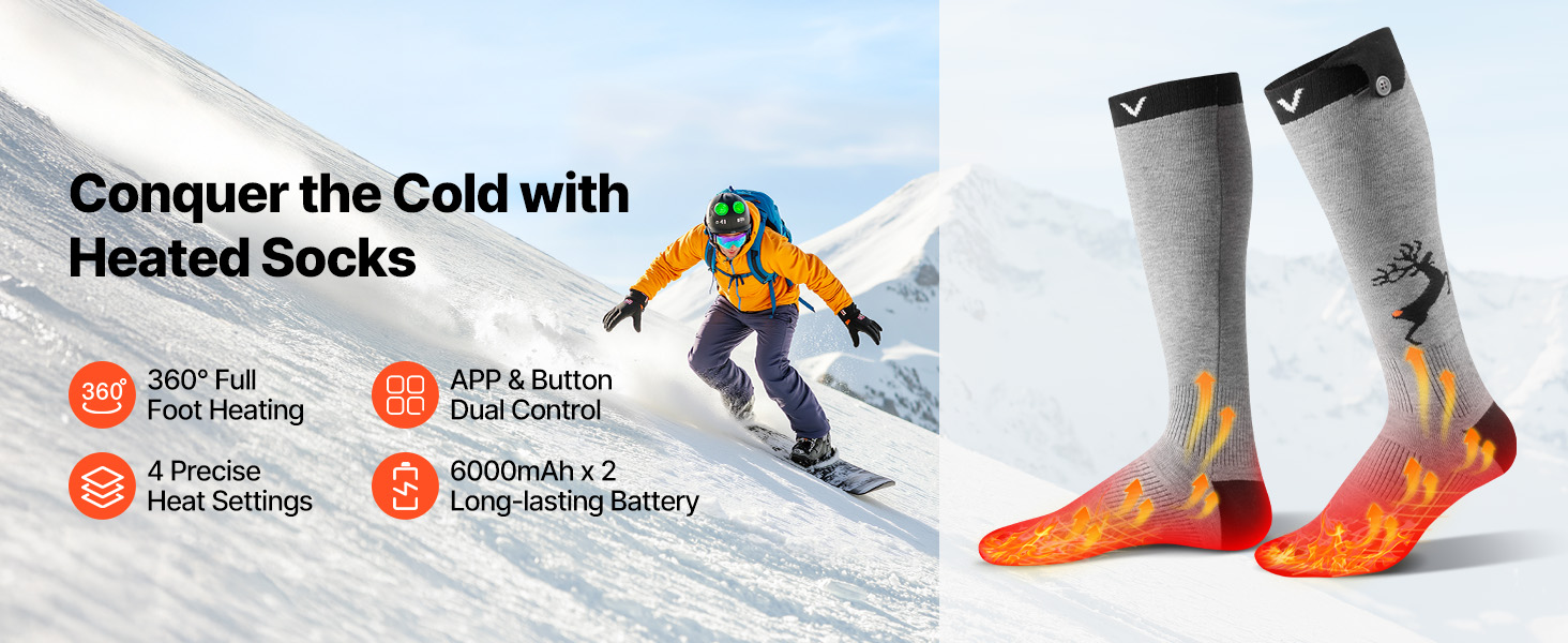 Naše vyhrievané ponožky so štyrmi nastaveniami tepla sú ideálne pre každého - od mladých dobrodruhov až po seniorov -, aby každý zostal v teple a pohodlí za každých podmienok.