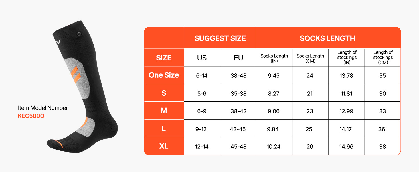 Elastický materiál ponožiek na batérie sa prispôsobí vašej nohe, takže nastavenie veľkosti je jednoduché. Vhodné pre mužov aj ženy a sú premysleným darčekom pre vašu rodinu - už si nemusíte robiť starosti s veľkosťou!