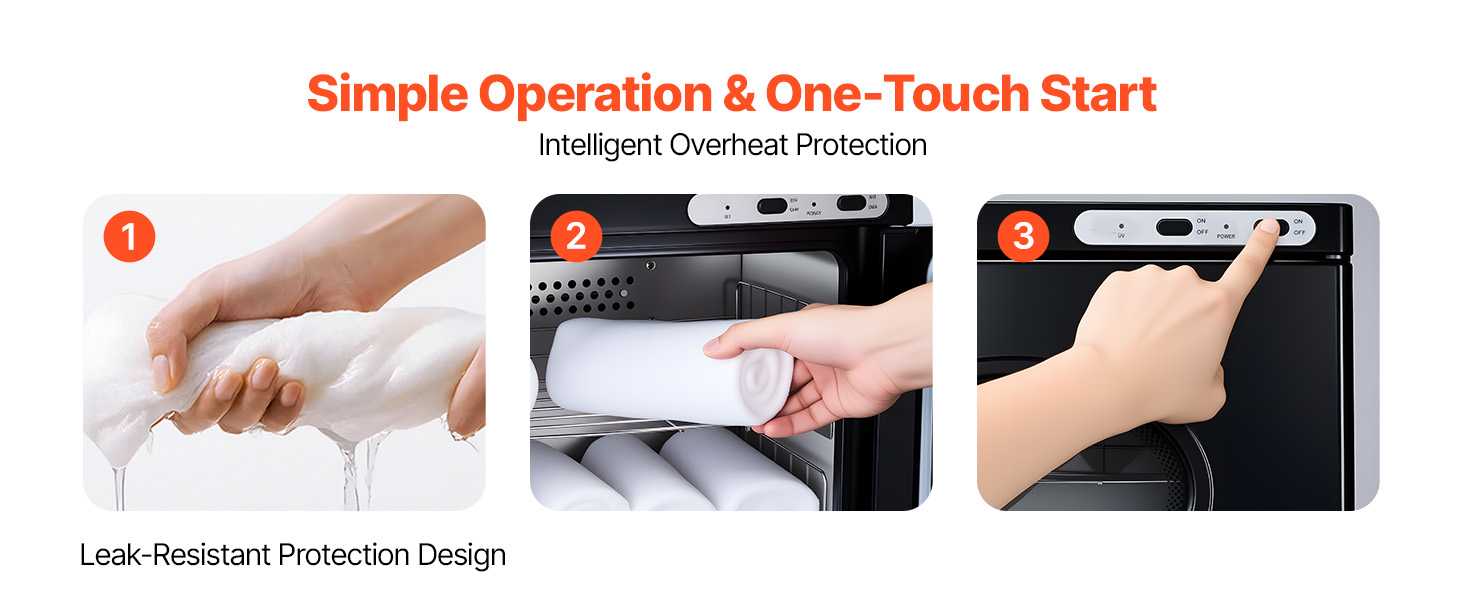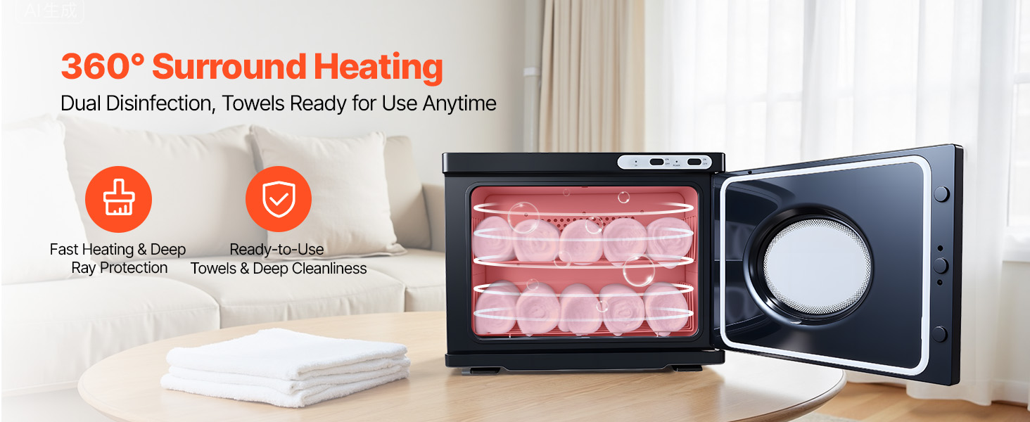 Naša skriňa na ohrievanie uterákov má 360° okolité tepelné vyžarovanie na rovnomerný ohrev (žiadne mŕtve rohy) a 24-hodinovú konštantnú teplotu. Vďaka dvojitej ochrane z čistej lampy a vysokoteplotnej dezinfekcii je jej používanie spoľahlivejšie.