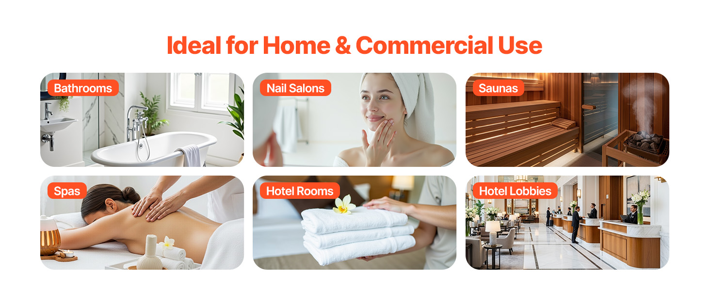 Náš ohrievač uterákov je vybavený dvojitou dezinfekciou (čistá lampa + vysoká teplota) a má veľký rozsah výkonu. Vďaka nerezovému rámu a vložke z hliníkovej zliatiny sa hodí do hotelov, salónov, kúpeľov a spĺňa rôzne potreby od základnej dezinfekcie až po priemyselné zaťaženie.