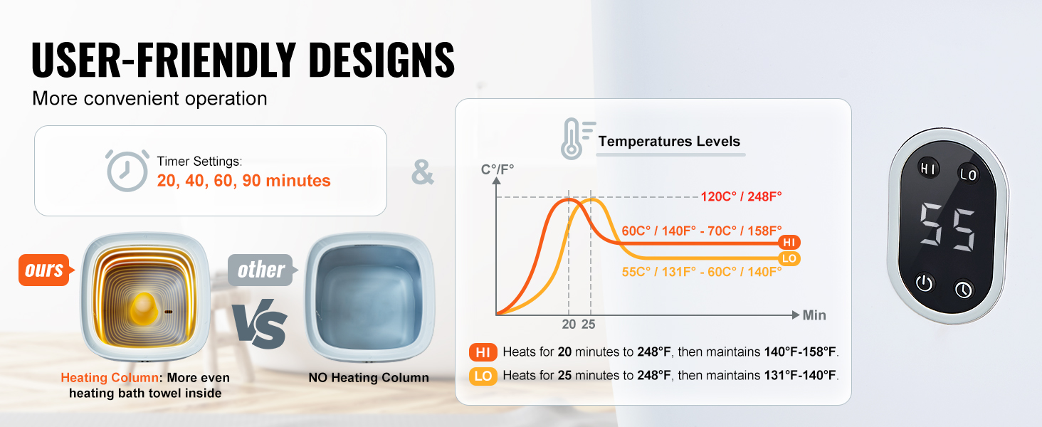Vedro na ohrievanie uterákov je navrhnuté so spodnými vyhrievacími drôtmi na rovnomerné zvyšovanie teploty, vďaka čomu sú vaše uteráky mäkšie a teplejšie bez studených miest. Po kúpaní alebo relaxácii v kúpeli si môžete vychutnať pohodlie zabalení do teplého uteráka.