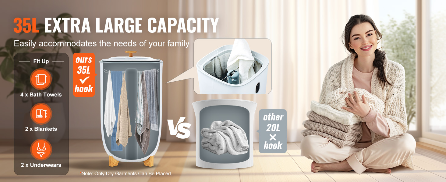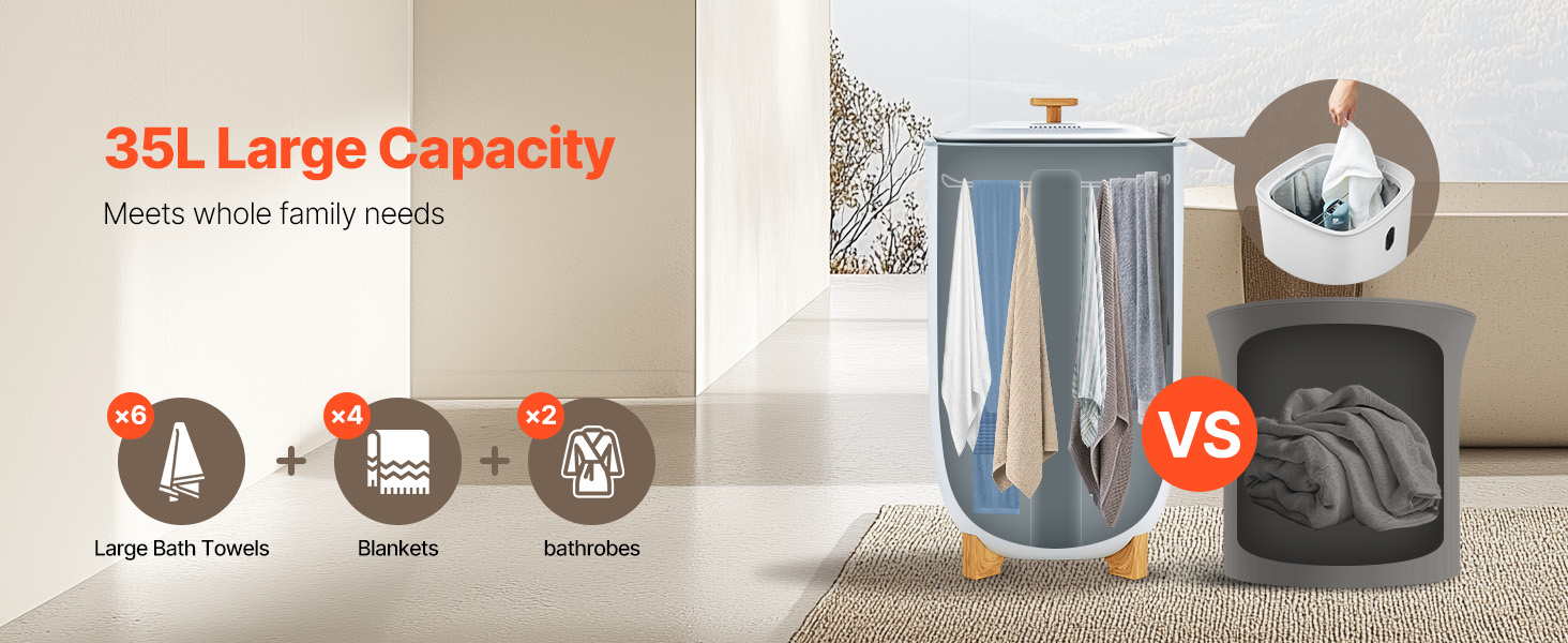 Náš ohrievač uterákov pojme dva veľké uteráky s rozmermi 70 x 40 palcov (177,8 x 101,6 cm), ako aj župany, deky, pyžamá a ďalšie. Vyhrievanie všetkého naraz je pohodlné pre celú rodinu, čím sa eliminujú problémy s viacnásobným vyhrievaním. Je to nevyhnutný domáci spotrebič pre veľké rodiny.
