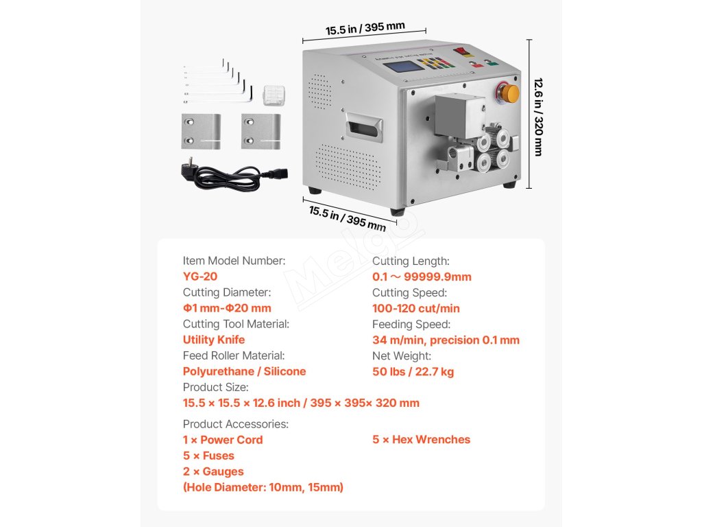 Tento automatický stroj na rezanie teplom zmrštiteľných rúrok ponúka efektívne a presné rezanie viacerých materiálov. Vyznačuje sa priemerom rezania od Φ1 mm do Φ20 mm, dĺžkou rezania od 0,1 mm do 99999,9 mm, presnosťou rezania 0,1 mm, automatickým ovládaním a užívateľsky prívetivým ovládacím panelom, čo zaručuje spoľahlivý rezací výkon.