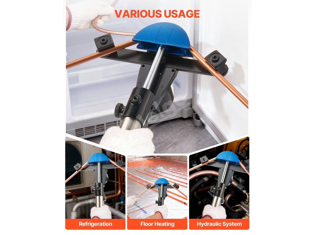 Po ohybe stačí otočiť proti smeru hodinových ručičiek, aby sa okamžite resetoval. Táto sada nástrojov na ohýbanie rúrok HVAC je vybavená hydraulickou podporou pre plynulý návrat a jednoduchú obsluhu.