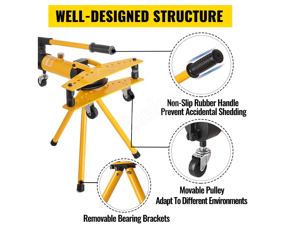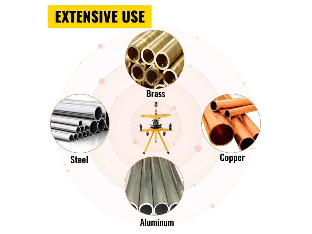 Túto ohýbačku rúr môžete použiť na ohýbanie mnohých rúrok, napríklad mosadzných, hliníkových, oceľových atď. Je vhodná aj na staveniská, inštalatérske práce, prepravu.