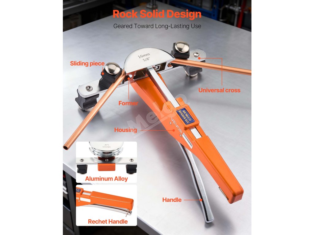 Ohýbačka rúrok je navrhnutá pre pohodlie a je vybavená ergonomickou rukoväťou a efektívnym račňovým systémom, ktorý znižuje únavu rúk. Na výkonné a presné ohyby stačí jedna ruka, a to aj počas dlhých pracovných smen.