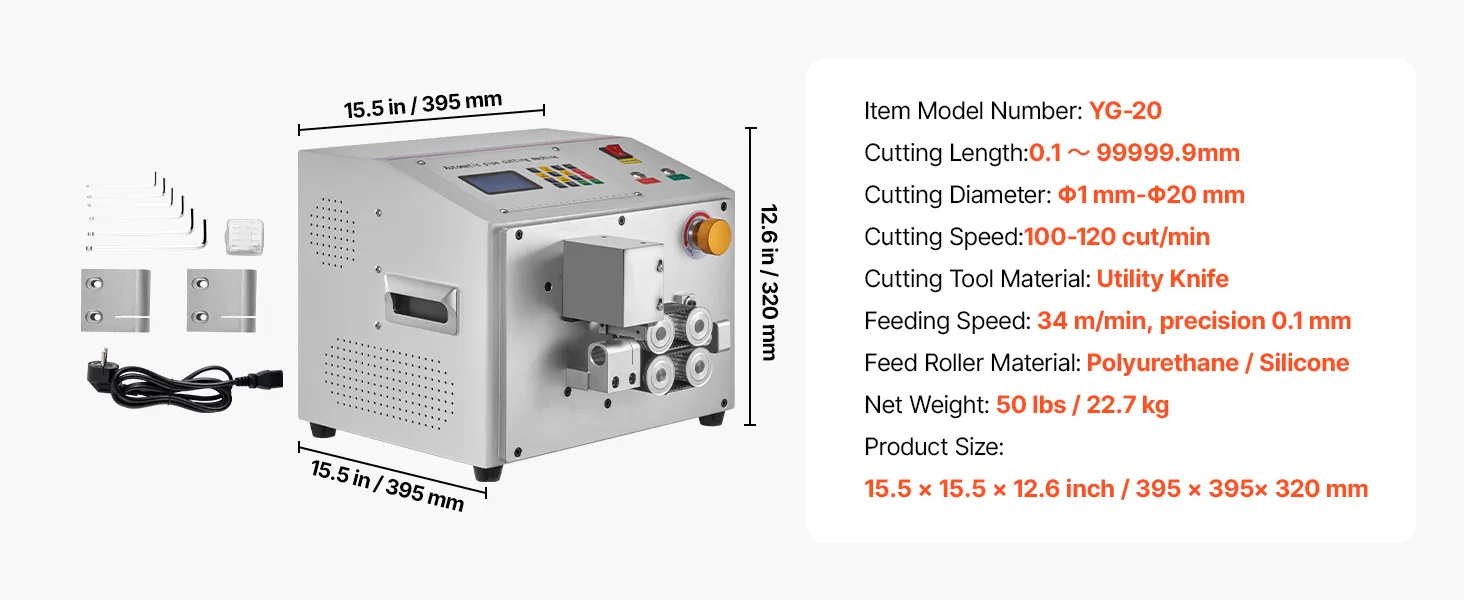 Automatická rezačka zmršťovacích hadíc 1mm–20mm, 0.1mm–99999.9mm s lcd