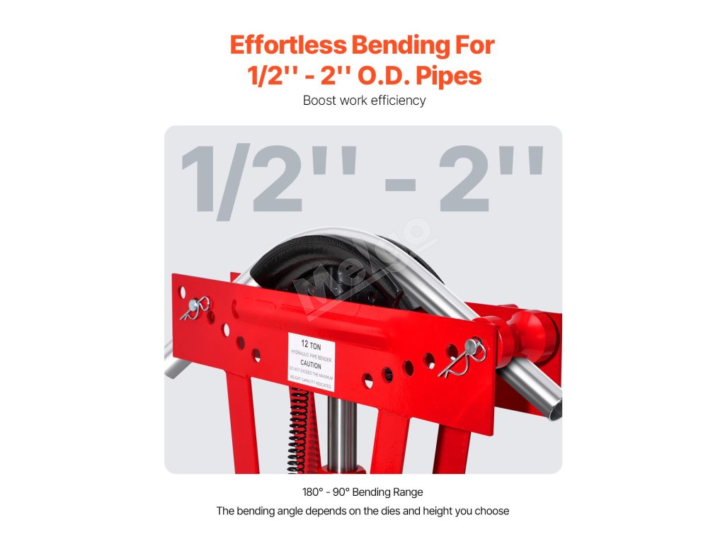 Touto 12-tonovou hydraulickou ohýbačkou potrubia možno ohýbať rúry v rozsahu 90 - 180 stupňov. Ohýbačka rúr je vhodná pre väčšinu typov kovových rúr a môže sa používať v potrubných stavbách, stavebníctve, potrubných, ropných, banských, lodiarskych a iných odvetviach.
