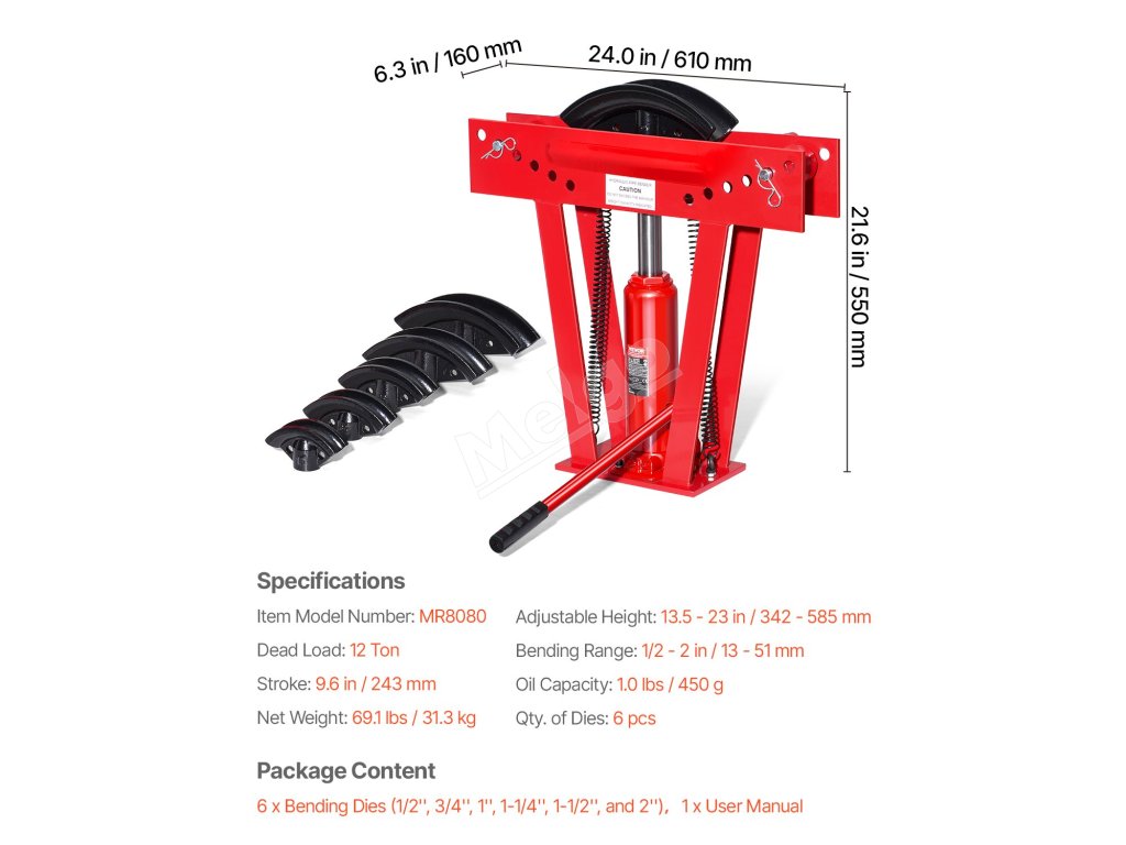 Hydraulická ohýbačka rúr VEVOR, 12 ton