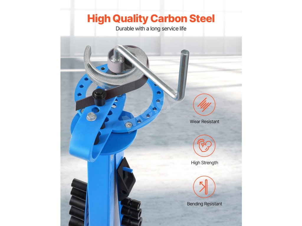 Táto ručná ohýbačka rúr pre veľké zaťaženie vyrobená z prvotriednej uhlíkovej ocele sa vyznačuje vysokou pevnosťou a odolnosťou proti opotrebovaniu, čo zaručuje stabilitu a spoľahlivosť aj pri dlhodobom používaní.