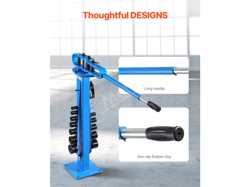 Táto ohýbačka rúr je vybavená protišmykovou gumovou rukoväťou na bezpečné a stabilné držanie pri ohýbaní. Predĺžená rukoväť v kombinácii s pákovým dizajnom, ktorý šetrí prácu, vám umožní ľahko dokončiť úlohy ohýbania.