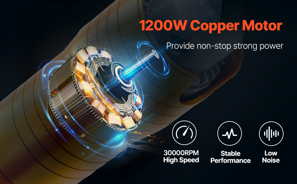 Toto rotačné náradie s ohybným hriadeľom, ktoré je vybavené 1200W medeným motorom pre vynikajúcu vodivosť, vysokú účinnosť, nízke straty a nízku hlučnosť, pracuje hladko a zvyšuje produktivitu.