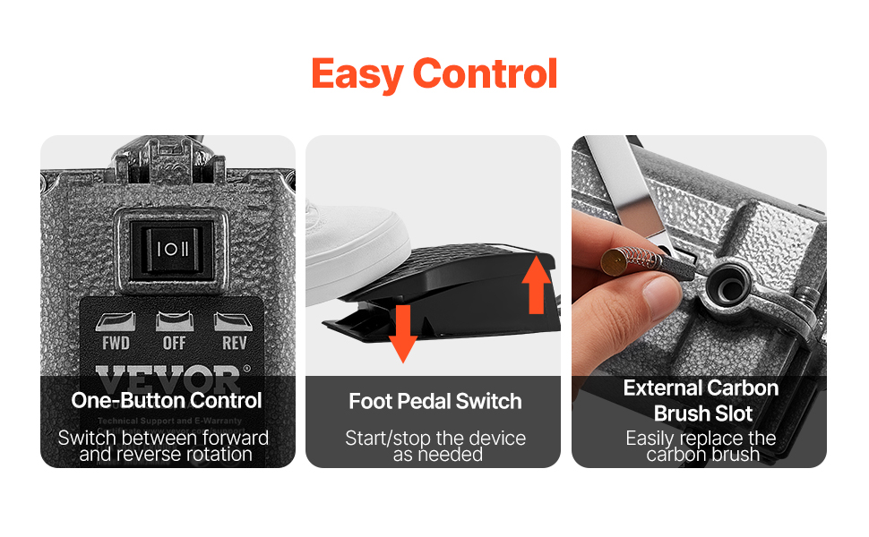 Nožný pedálový spínač flexi brúsky umožňuje spúšťať a zastavovať rotačný brúsny nástroj bez použitia rúk, čo je užitočné najmä pri presnom ovládaní alebo v prípade, keď sú vaše ruky obsadené.