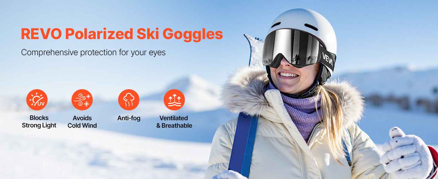 Tieto lyžiarske okuliare Revo blokujú ostré slnečné svetlo a znižujú oslnenie na snehu, čím pomáhajú predchádzať snežnej slepote. Chránia vás pred studeným vetrom, udržiavajú váš výhľad bez zahmlievania a udržiavajú čerstvé prúdenie vzduchu, takže si môžete s istotou užiť každú jazdu.