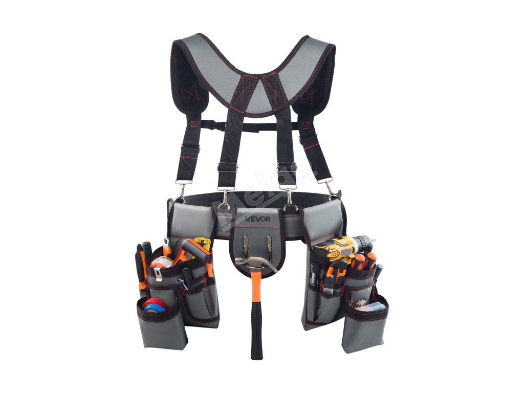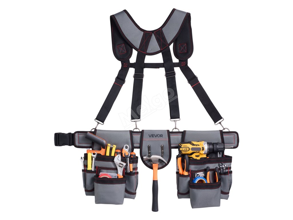 Pás na náradie s 22 vreckami a trakmi, nastaviteľný 81–173 cm