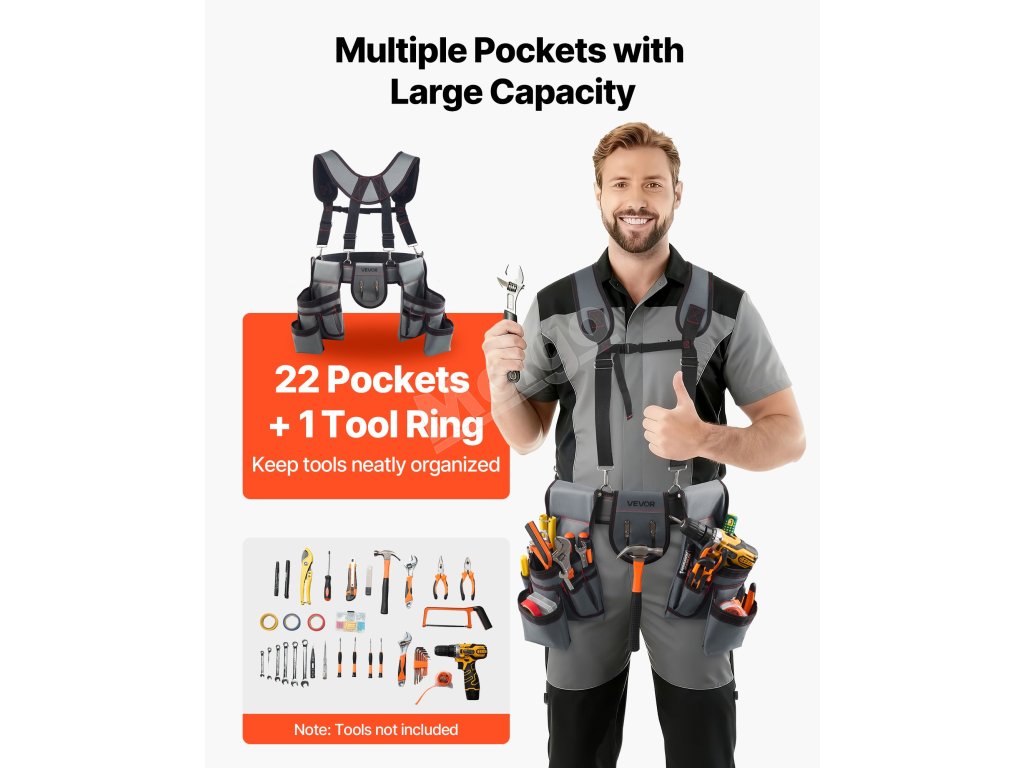 Tento opasok na náradie je vybavený viacerými rôznymi vreckami a pojme kliešte, skrutkovače, meracie pásma, klince a iné náradie. Je vhodný na stolárske práce, dekorácie alebo každodenné opravy, udržiava náradie na dosah ruky a zvyšuje efektivitu práce.