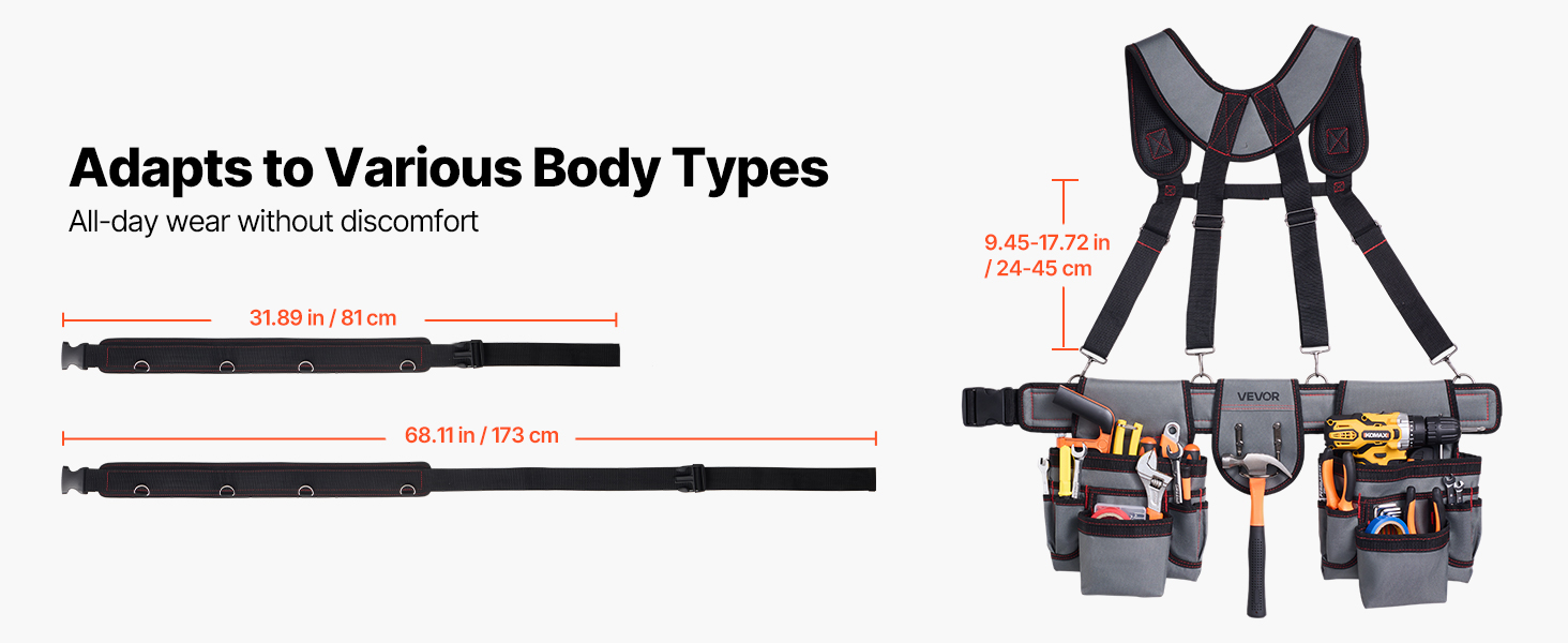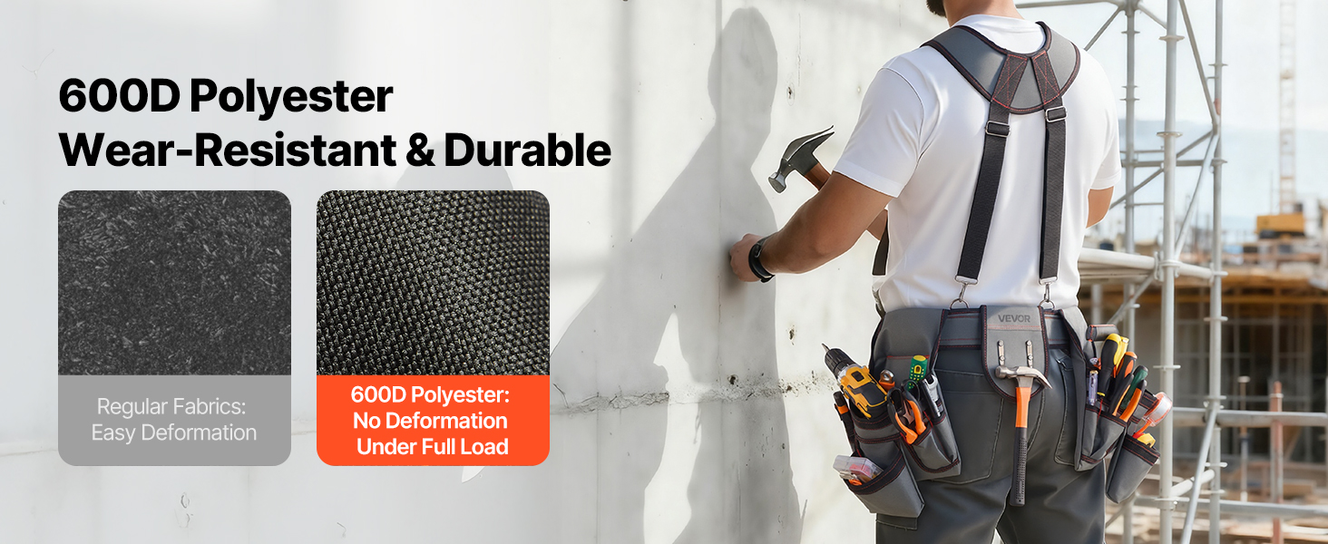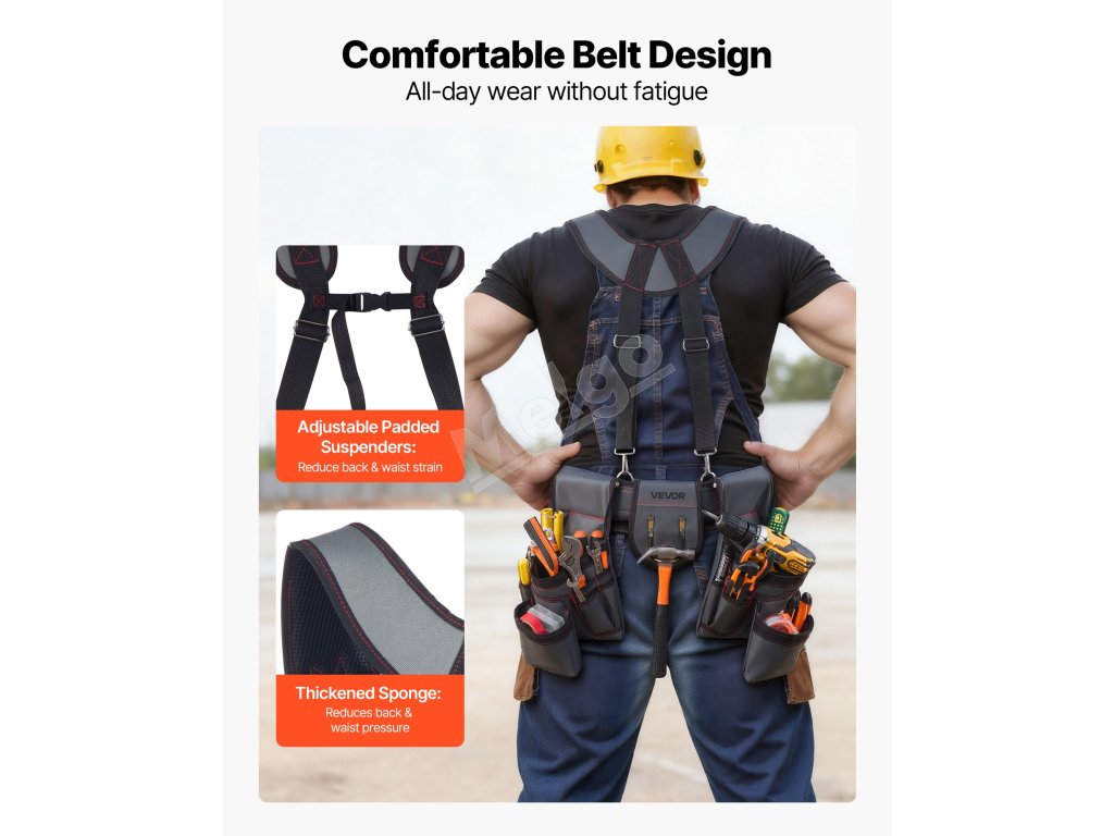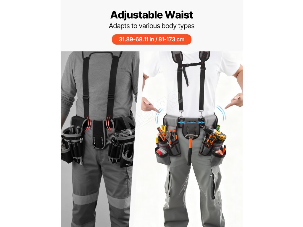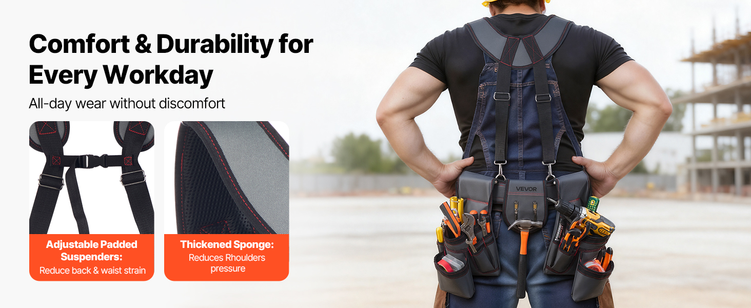 Tento rozšírený, zosilnený opasok na náradie pre tesárov má ergonomicky navrhnutý pás s nastaviteľnými prackami, ktoré rovnomerne rozložia váhu a znížia namáhanie po dlhej práci. Zostaňte pohodlní bez tlaku alebo štipania v páse po celý deň.
