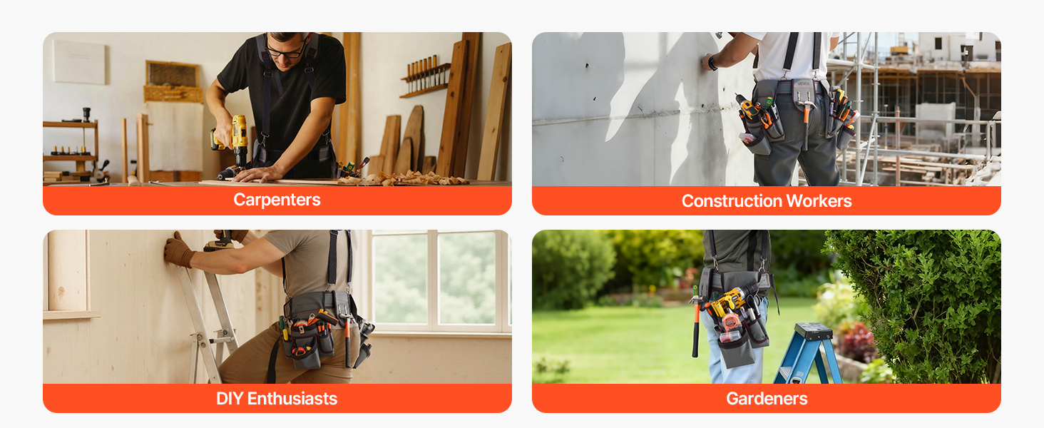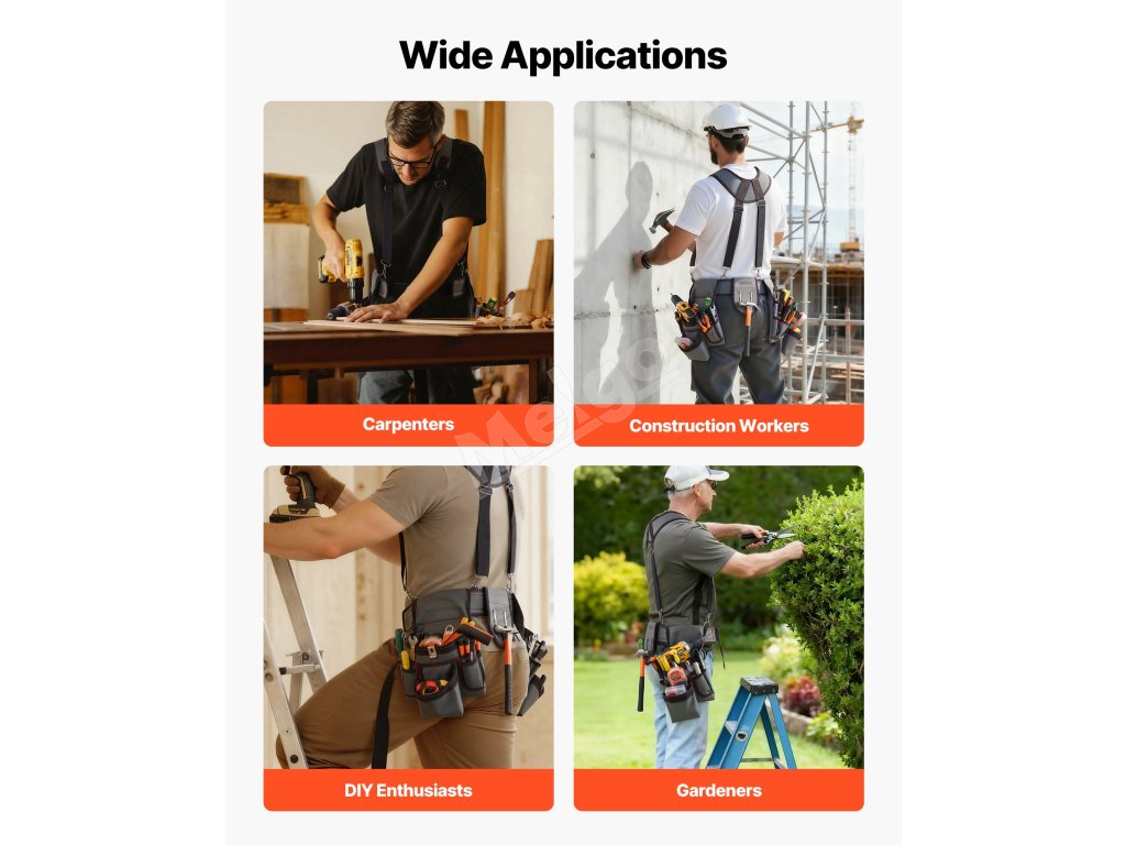 Ideálny pre profesionálnych remeselníkov, stavebných robotníkov alebo nadšencov DIY. Tento opasok na náradie je vhodný na domáce dekorácie, záhradníctvo, elektrické opravy a drevárske práce, čím zabezpečuje efektívny a pohodlný prístup k náradiu.
