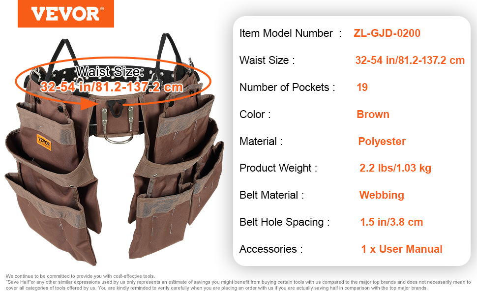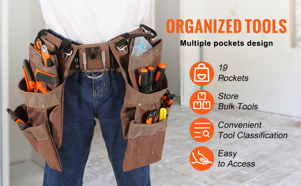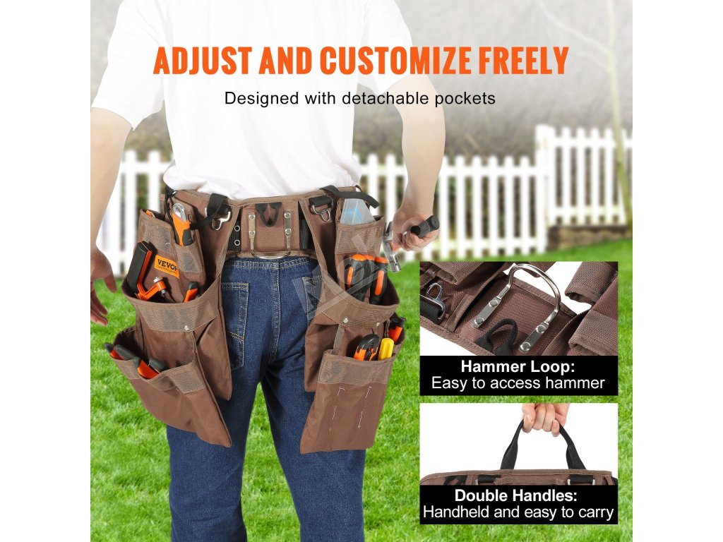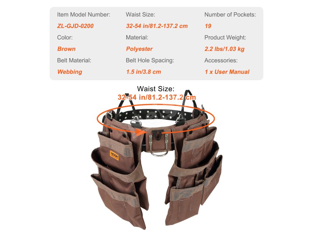 Opasok na náradie, 19 vreciek, 32–54 inches, odnímateľné vrecko