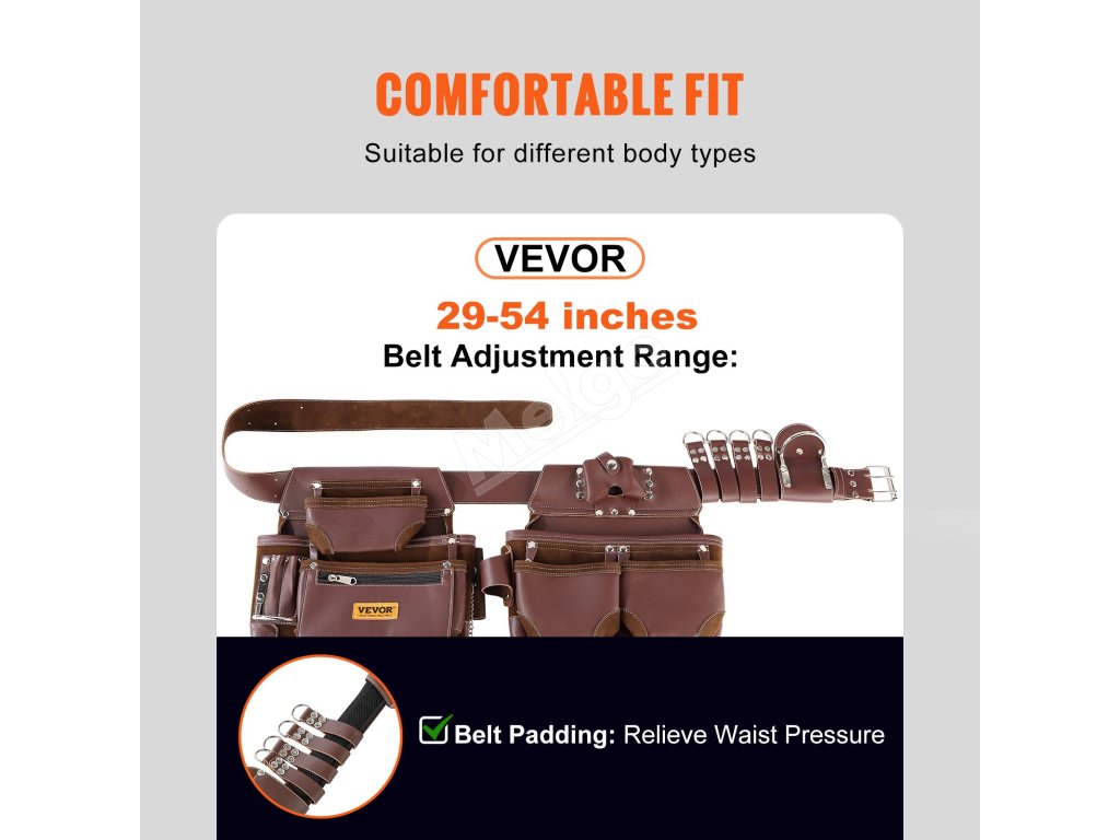 Náš opasok na náradie pre elektrikárov poskytuje rozsah od 29 do 54 palcov, šitý na mieru pre mužov. Polstrovaná podšívka znižuje tlak a trenie, čím vám poskytuje pohodlnú oporu a oslobodzujúci zážitok z celodenného nosenia.