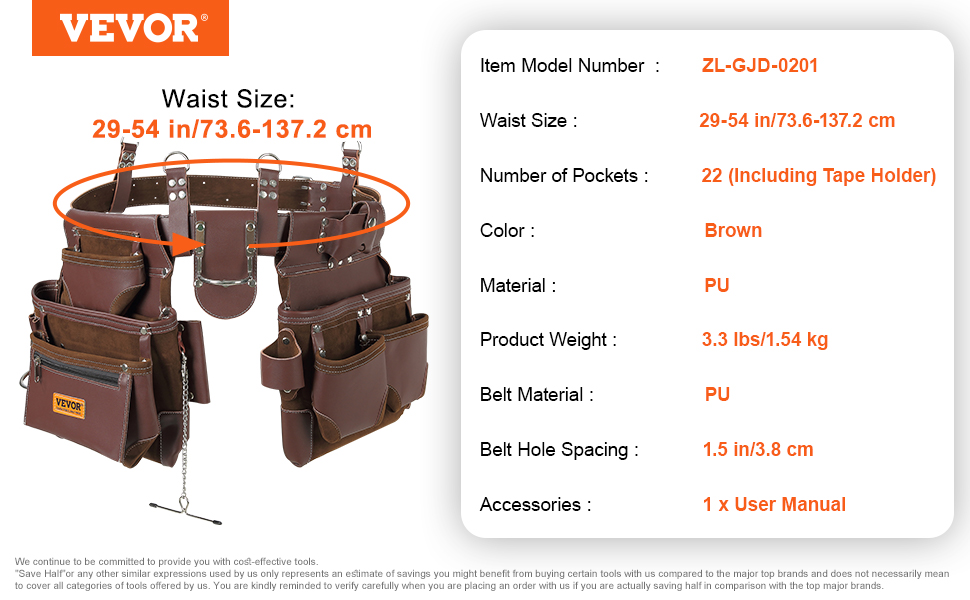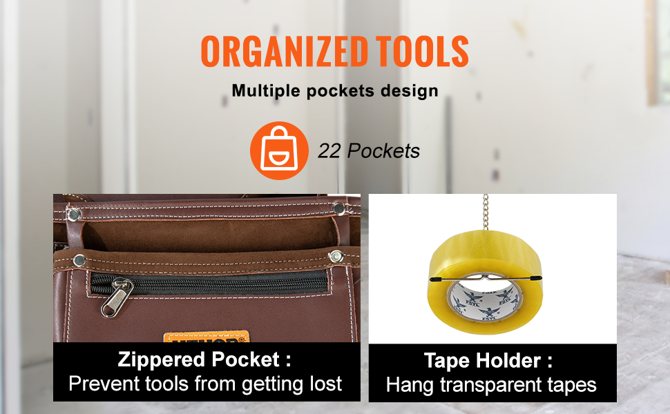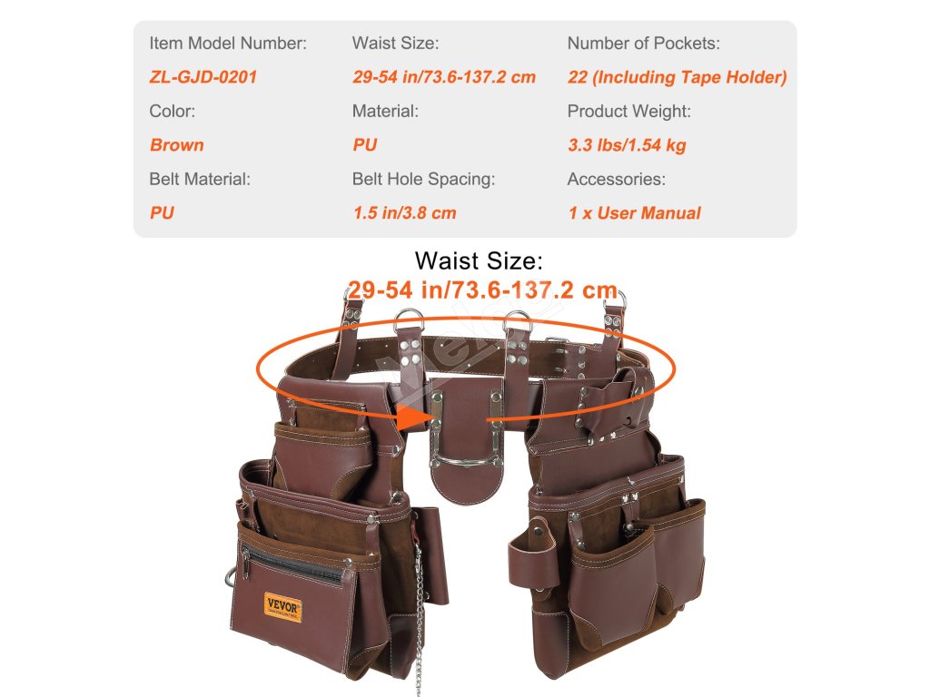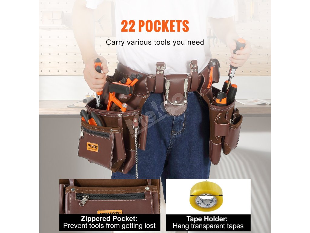 Opasok na náradie 22 vreciek, nastaviteľný 29–54 inches, pu koža