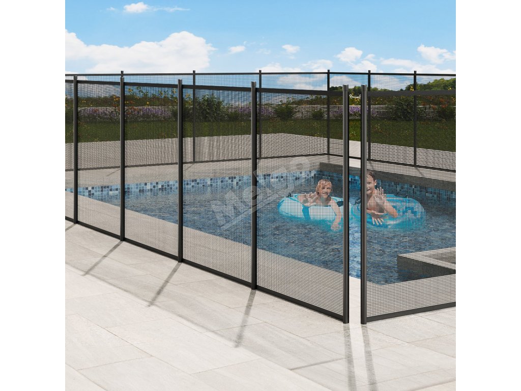 Náš rám bezpečnostného oplotenia bazéna, vyrobený z nôh z nehrdzavejúcej ocele a hliníkových rúrok, je pevný a odolný, schopný odolať búrkam a silnému dažďu, čím poskytuje dlhodobú ochranu vášho bazéna.