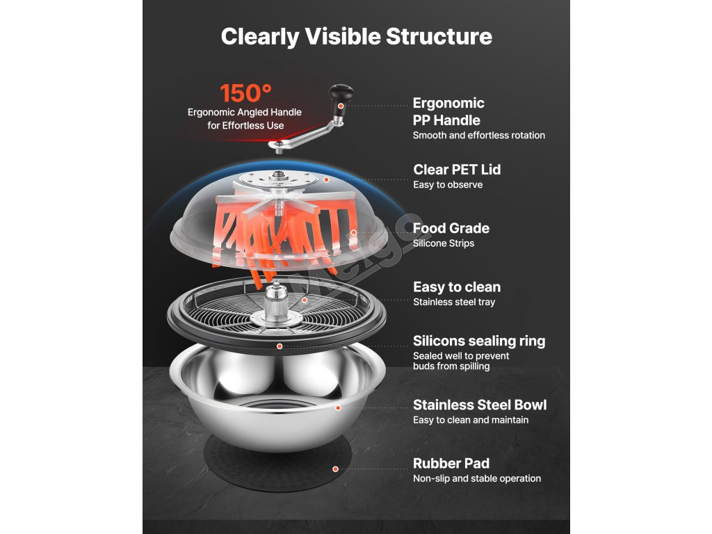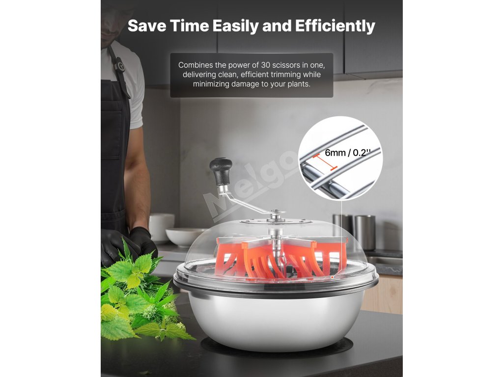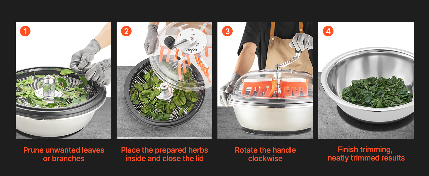 Jednoducho vložte bylinky do zastrihávača rezných listov, zaistite veko a otočte rukoväťou v smere hodinových ručičiek. Vychutnajte si záhradnícky zážitok na profesionálnej úrovni s minimálnou námahou.