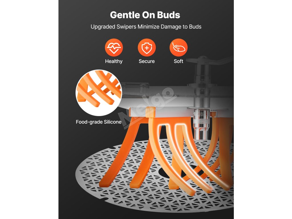 Vyrobené s prstami z potravinárskeho silikónu, ktoré šetrne manipulujú s vašimi púčikmi, čím znižujú ich poškodenie a zachovávajú kvalitu rastlín. Strihajte zakaždým starostlivo a s istotou.