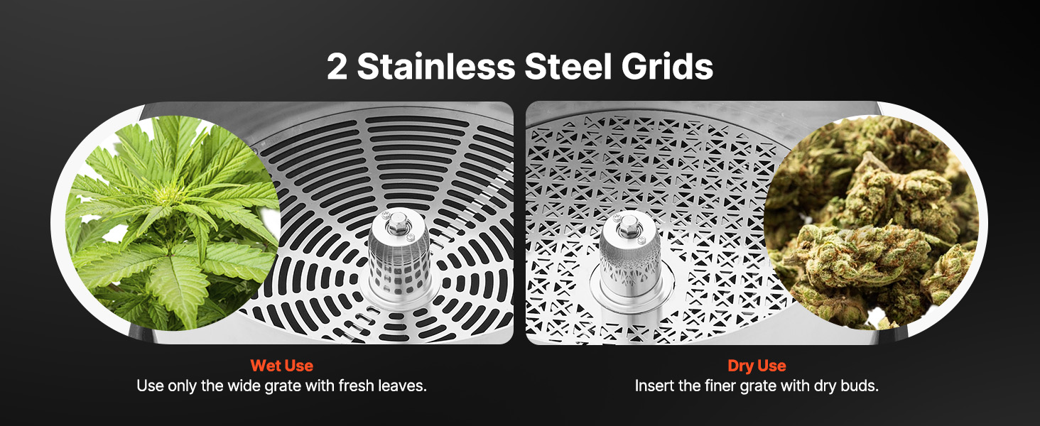 Náš zastrihávač lístia obsahuje dve mriežky z nehrdzavejúcej ocele: použite hustú mriežku na zastrihávanie suchého lístia alebo vymeňte mriežku so širokou štrbinou, aby ste si poradili s lepkavými, mokrými listami. Ľahko prepínajte medzi režimami, aby ste splnili všetky potreby vašej záhrady.