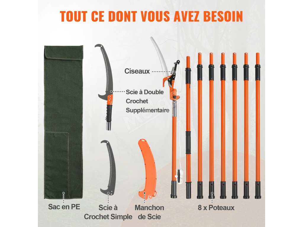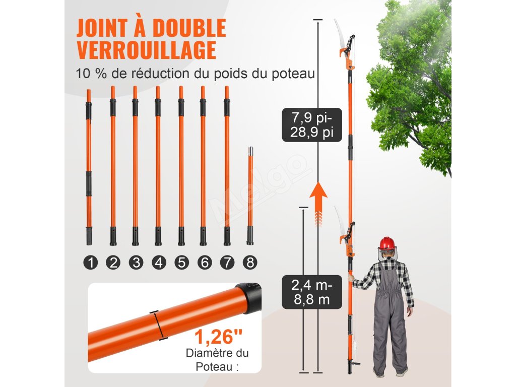 Stromy, ktoré stoja vysoko na vašom dvore, môžete orezávať bez námahy a kývania. Dlhý dosah tyče znamená, že sa dostanete aj na ťažko prístupné miesta. Ručná tyčová píla VEVOR sa vysúva až do výšky 27 metrov. Poskytuje vám výšku, ktorú potrebujete pre vyššie stromy. Nastavuje sa po častiach.