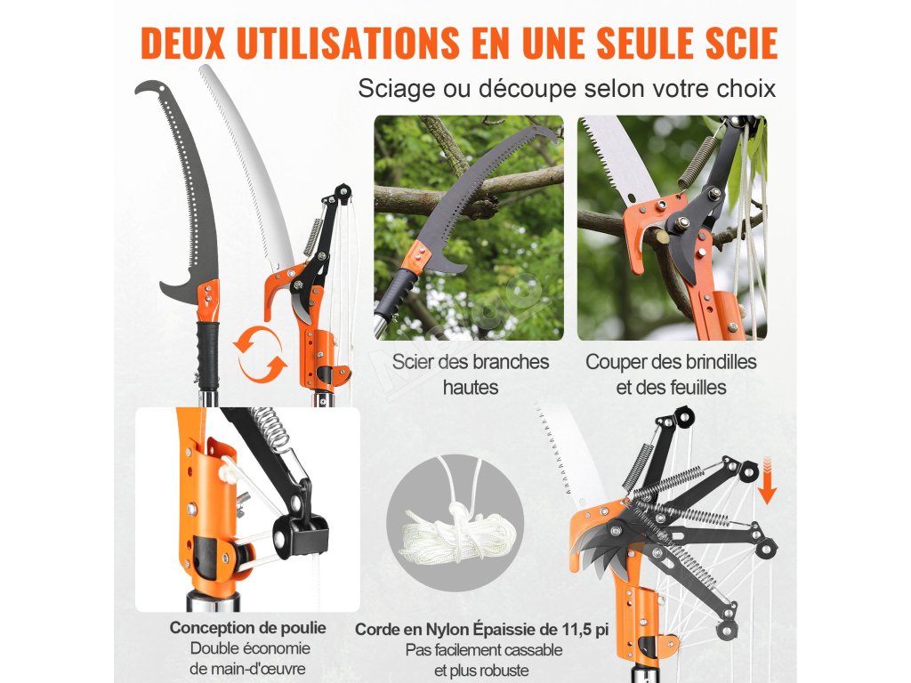 Starostlivosť o nízke konáre by si nemala vyžadovať ohýbanie. Z orezávania vysokých stromov môžete rýchlo prejsť na rezanie malých kríkov. Práca vám tak pôjde od ruky bez potreby ďalších nástrojov. Odnímateľná konštrukcia ručnej tyčovej píly VEVOR.