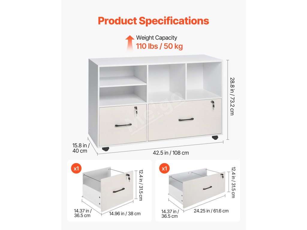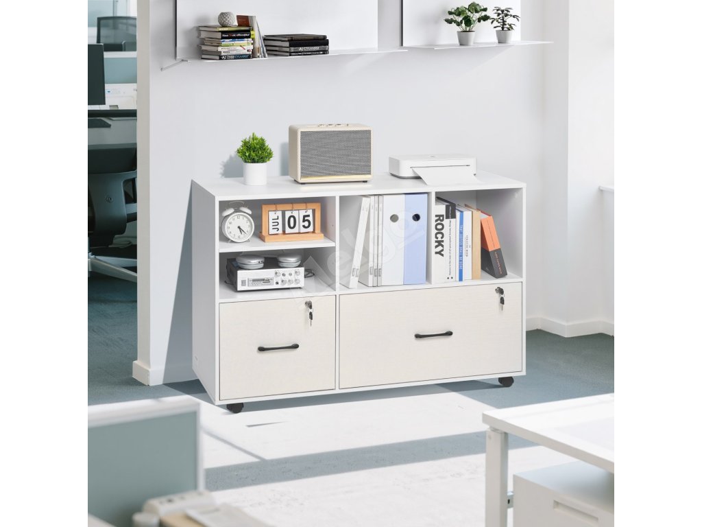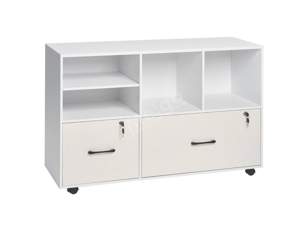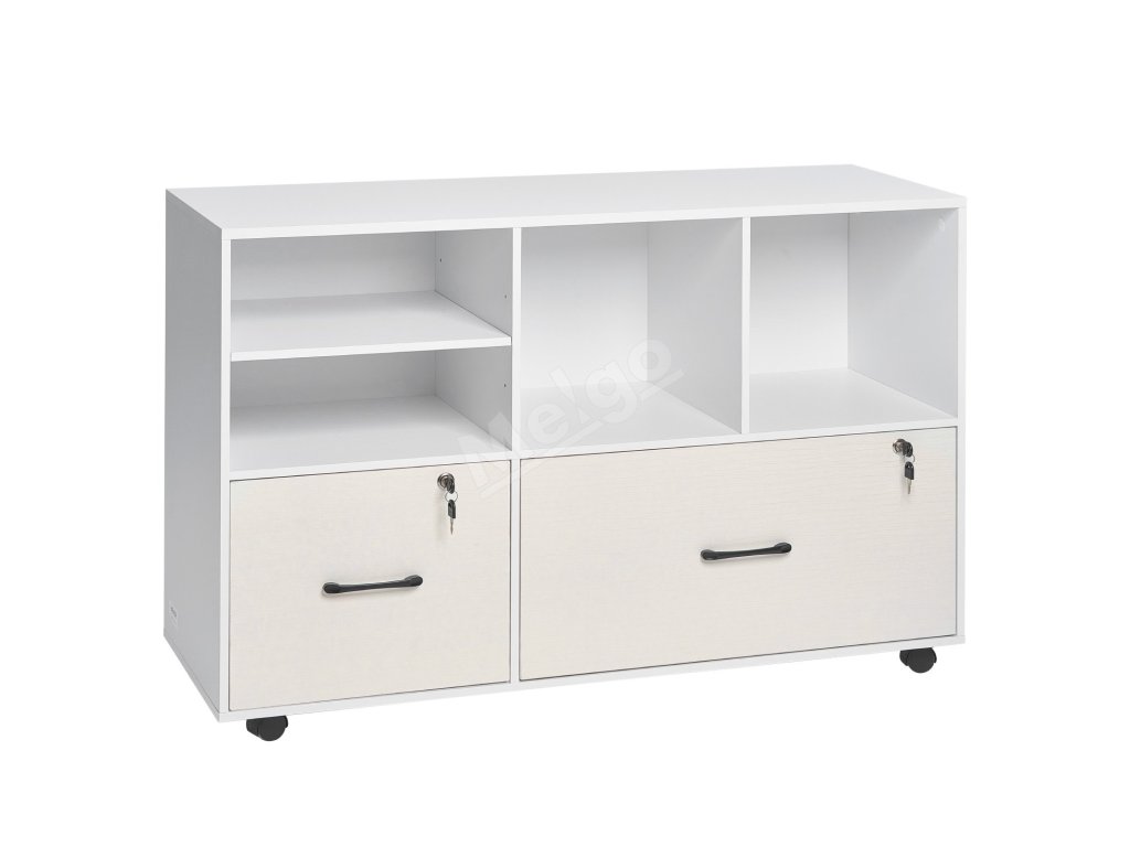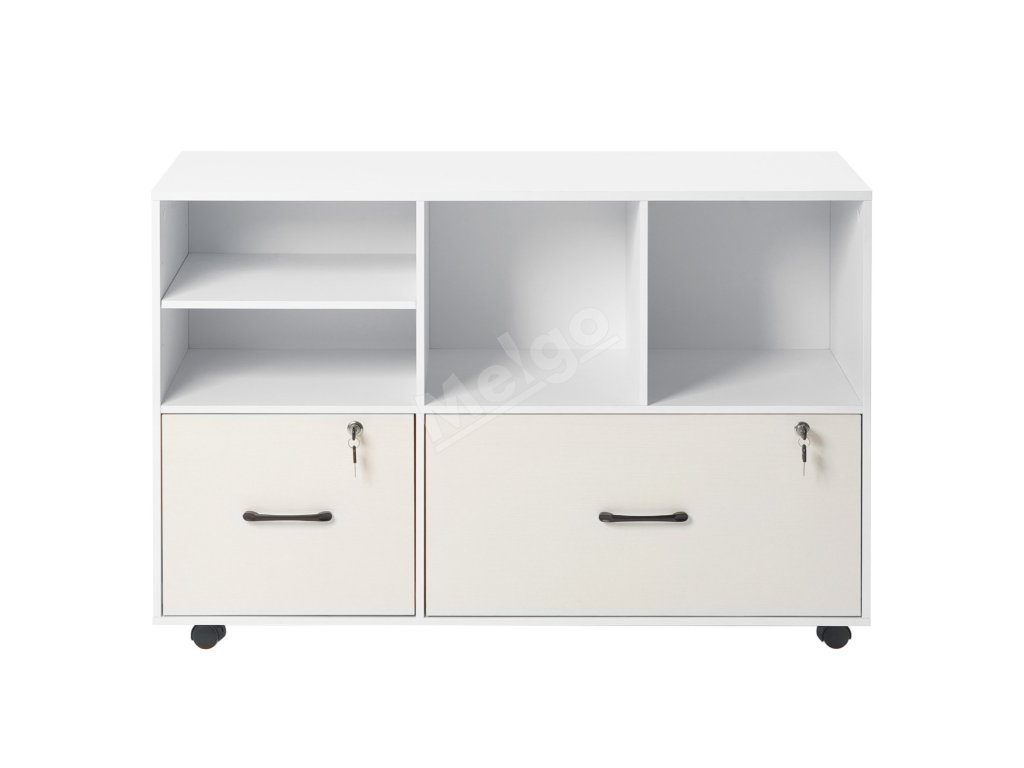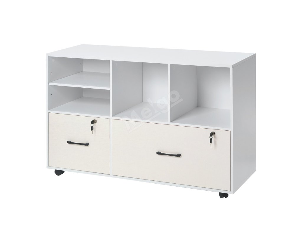 Drevená mobilná kartotéka 2 zásuvky, zamykaná, pre tlačiareň, biela