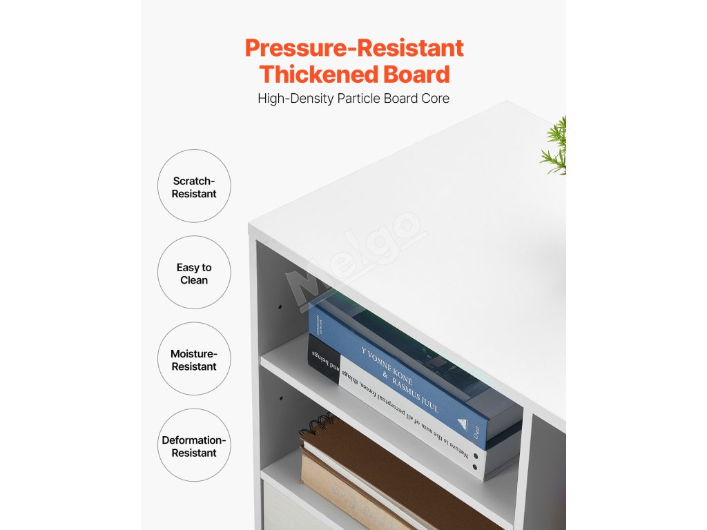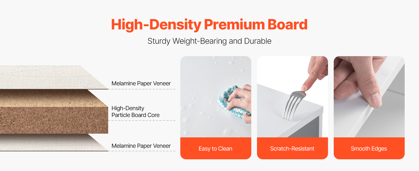 Drevená kartotéka, vyrobená z drevotrieskovej dosky s vysokou hustotou s melamínovou papierovou dyhou, je odolná voči ohýbaniu a ľahko sa čistí - ideálna na utieranie každodenných kancelárskych škvŕn alebo vodoznakov. Zaoblené hrany zaisťujú bezpečnosť a pohodlie a znižujú riziko poškriabania.