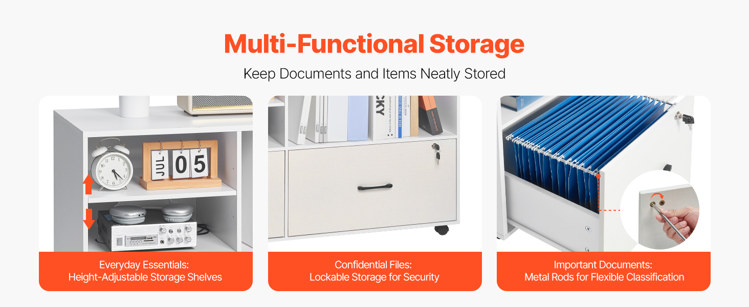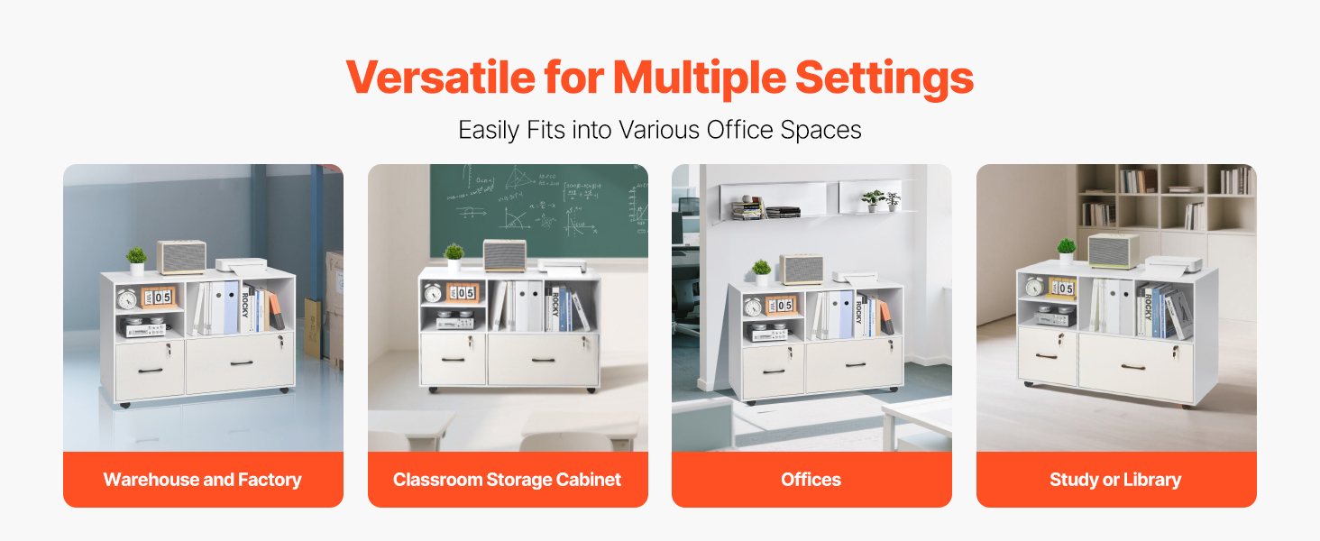 Použite ho ako písací stôl v skladoch/faktúrach, úložnú skriňu v učebniach, kartotéku v kanceláriách alebo študijný stôl v domácnosti. Je vybavený hladko sa otáčajúcimi kolieskami, takže sa ľahko premiestňuje a umiestňuje v akomkoľvek priestore.