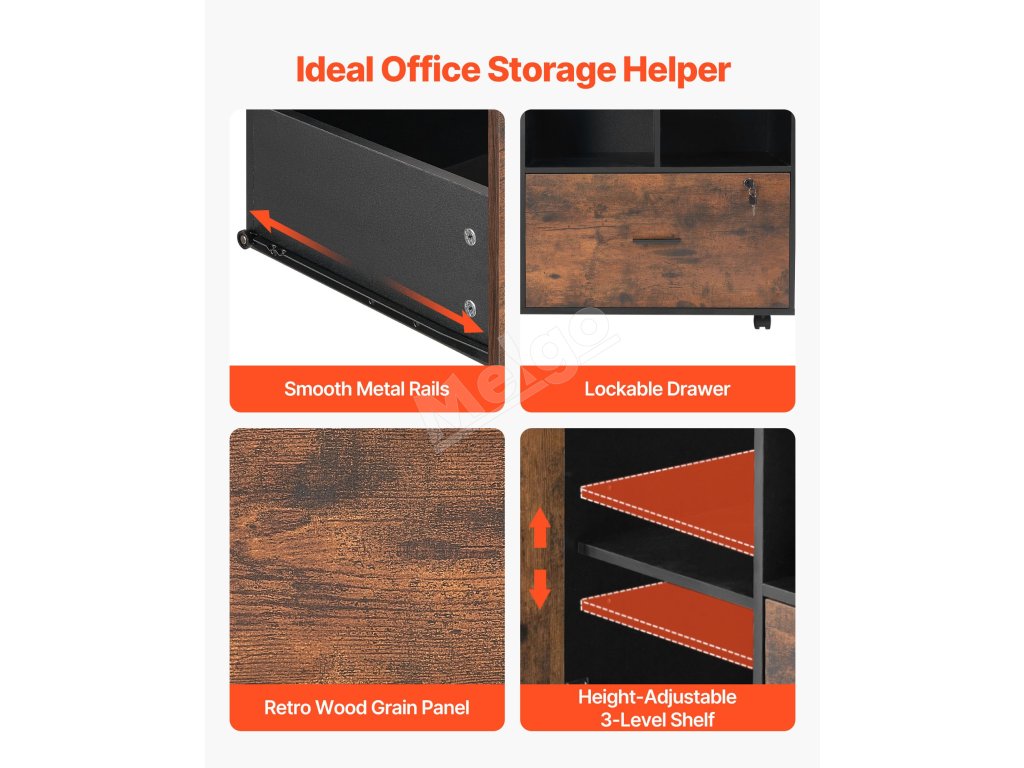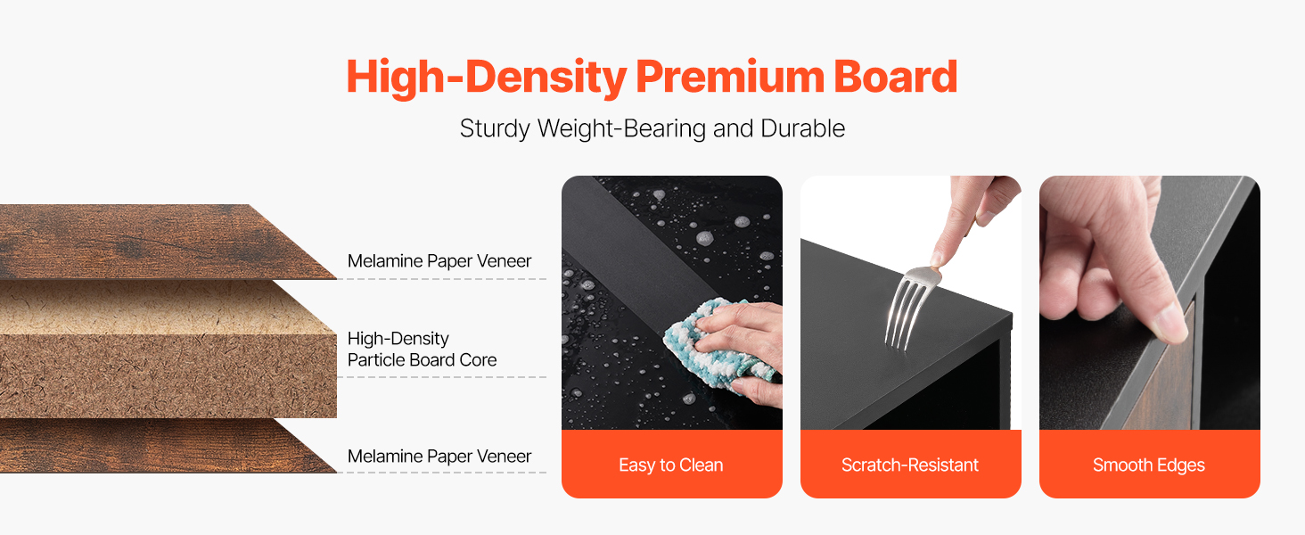 Drevená kartotéka, vyrobená z drevotrieskovej dosky s vysokou hustotou s melamínovou papierovou dyhou, je odolná voči ohýbaniu a ľahko sa čistí - ideálna na utieranie každodenných kancelárskych škvŕn alebo vodoznakov. Zaoblené hrany zaisťujú bezpečnosť a pohodlie a znižujú riziko poškriabania.