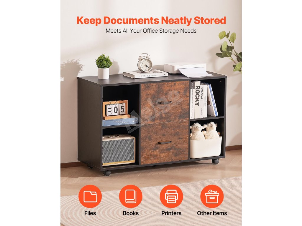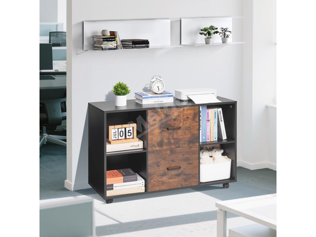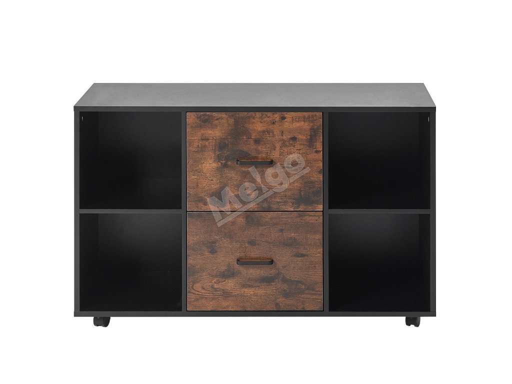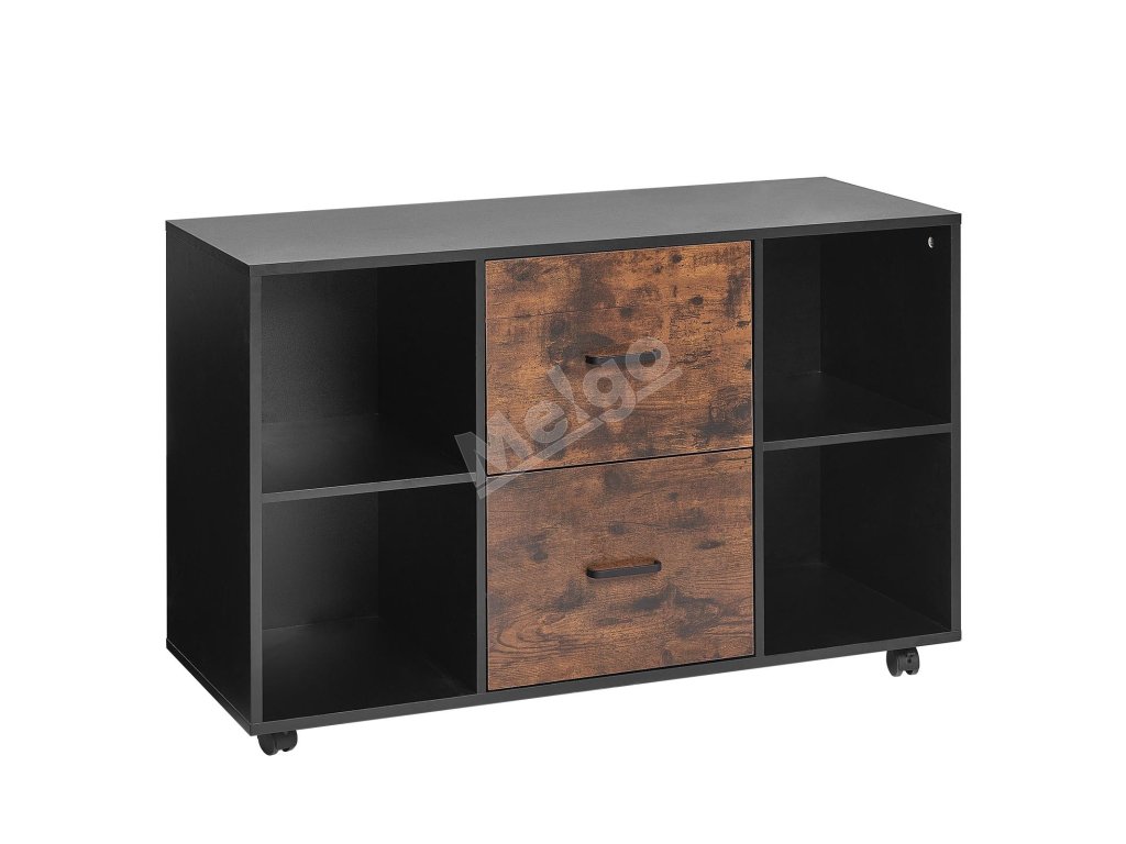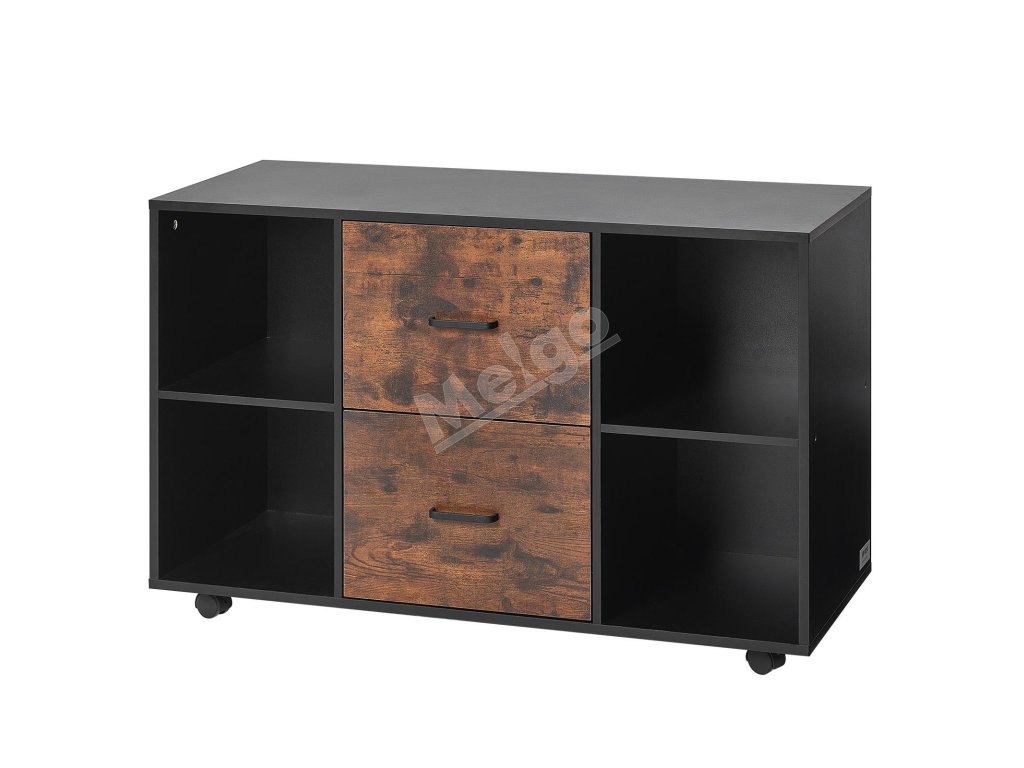 Drevený kancelársky archív 2 zásuvky, police, kolieska, čierny