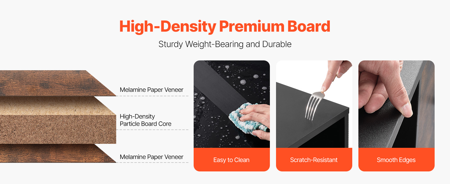 Drevená kartotéka, vyrobená z drevotrieskovej dosky s vysokou hustotou s melamínovou papierovou dyhou, je odolná voči ohýbaniu a ľahko sa čistí - ideálna na utieranie každodenných kancelárskych škvŕn alebo vodoznakov. Zaoblené hrany zaisťujú bezpečnosť a pohodlie a znižujú riziko poškriabania.