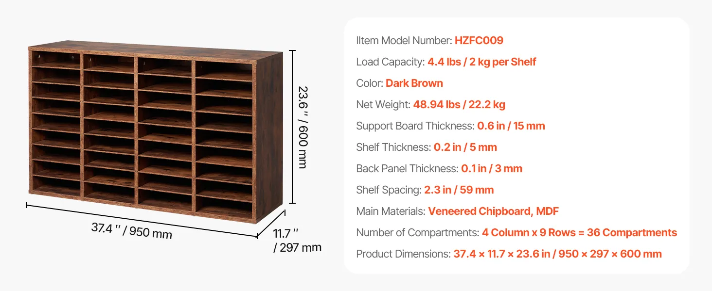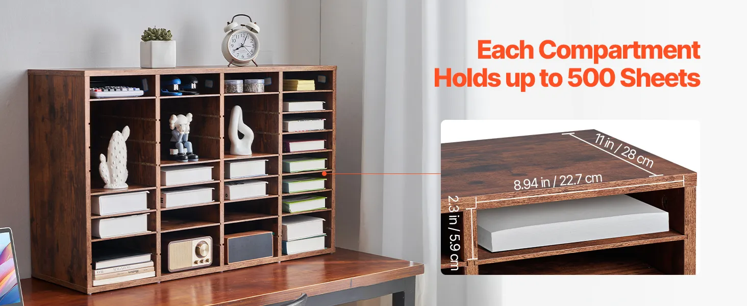 Každá priehradka kancelárskej schránky má rozmery 10,0 x 11,0 x 2,1 palca / 254 x 279 x 533 mm a pojme až 500 listov papiera formátu A4. Priložené štítky vám pomôžu rýchlo nájsť vaše súbory, čím ušetríte drahocenný čas.