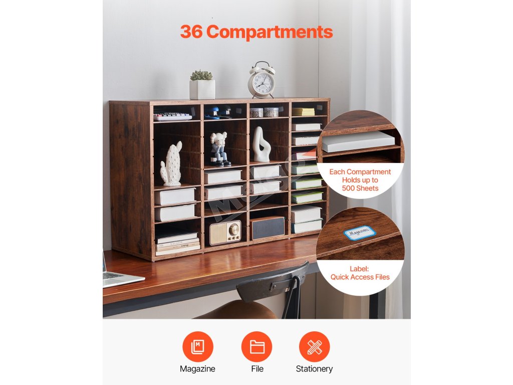 Drevený organizér 36 priehradiek s odnímateľnými policami, tmavohnedý