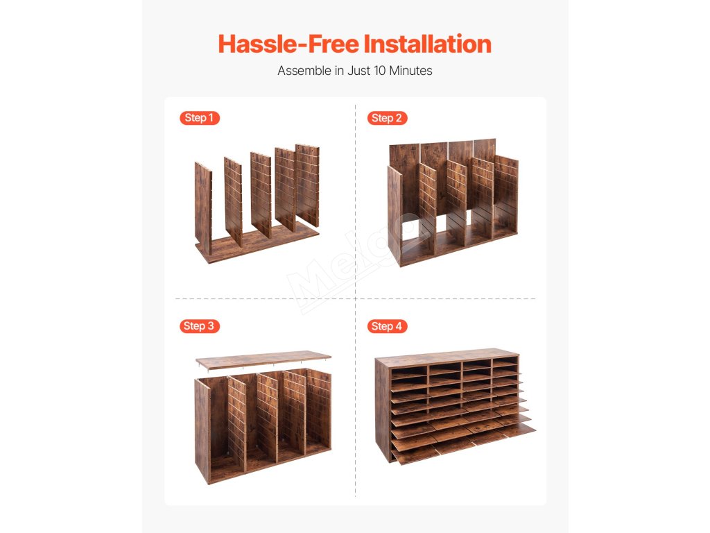Každá priehradka kancelárskej schránky má rozmery 10,0 x 11,0 x 2,1 palca / 254 x 279 x 533 mm a pojme až 500 listov papiera formátu A4. Priložené štítky vám pomôžu rýchlo nájsť vaše súbory, čím ušetríte drahocenný čas.