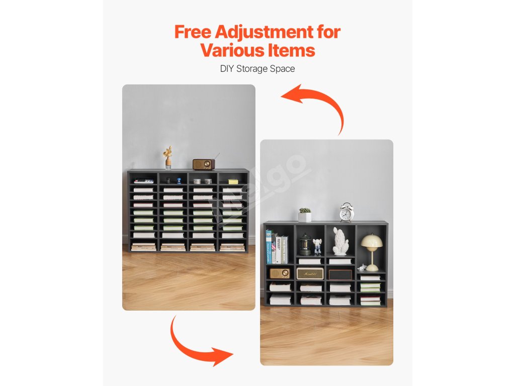 Organizér na dokumenty, 36 priehradok, nastaviteľné police, sivý